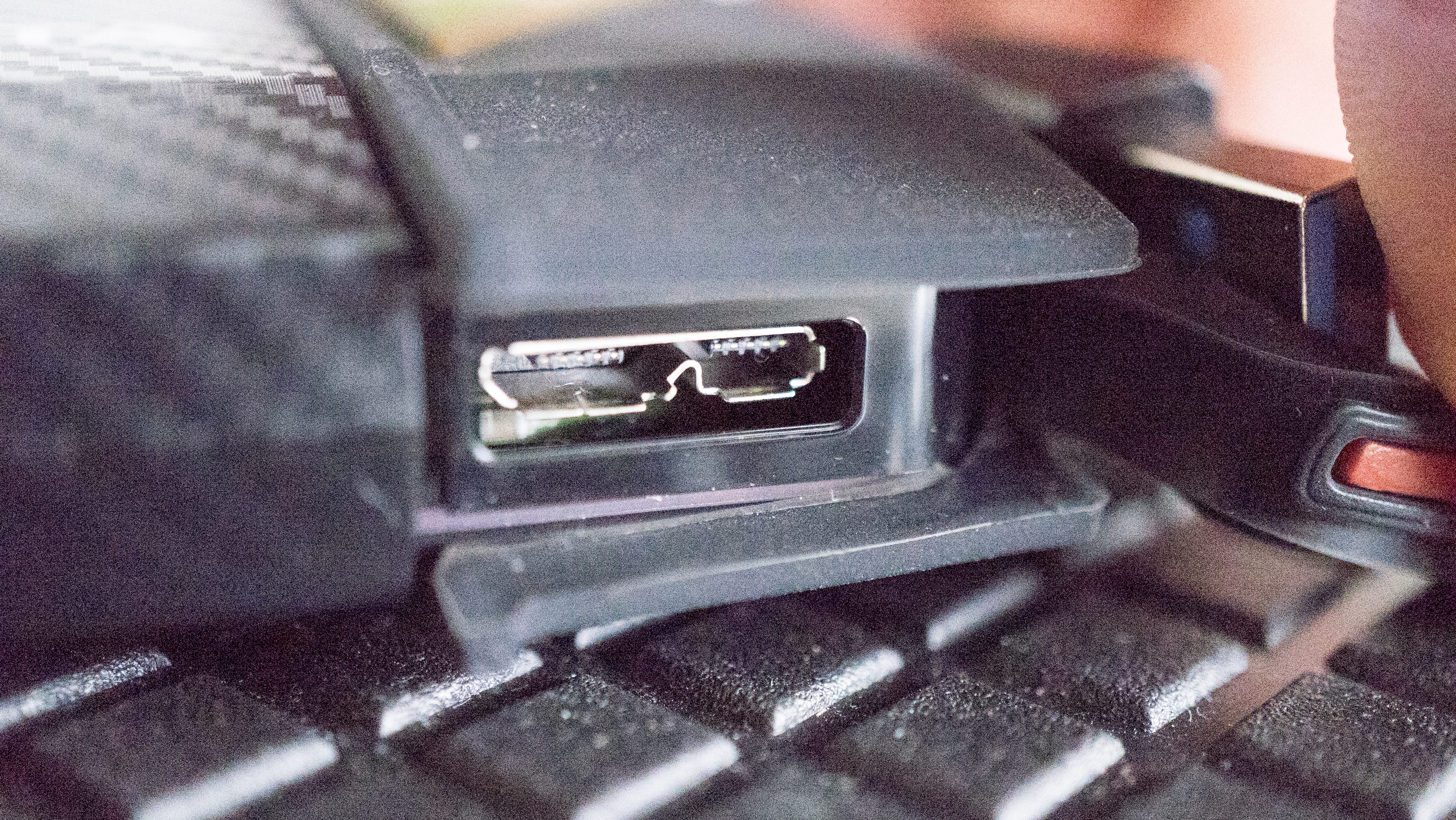 The drive we were sent is covered in a camouflage green pattern, but they’re also available in black, blue and yellow. The majority of the drive is covered in rubber, mixing up the camouflage pattern between black accented stripes. The middle uses a faux carbon fibre like texture which looks a little fake, but still stylish. The USB cable clips around the outside of the drive for easy storage and a way of not losing it which on adventures.