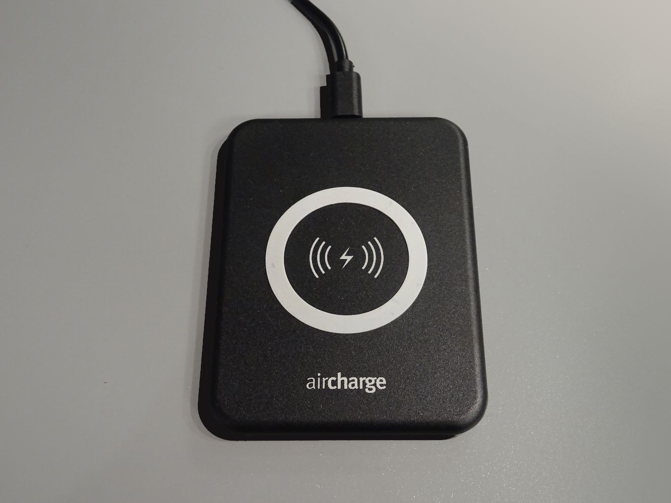 The Aircharge Black Edition Executive wireless charger is more of a static option for you in the home. Although it comes with no wall plug, there is a USB plug on the end of it to go into some kind of desktop or laptop. I have mine set up for example on my desk at home, so every time I sit down I can charge my mobile.