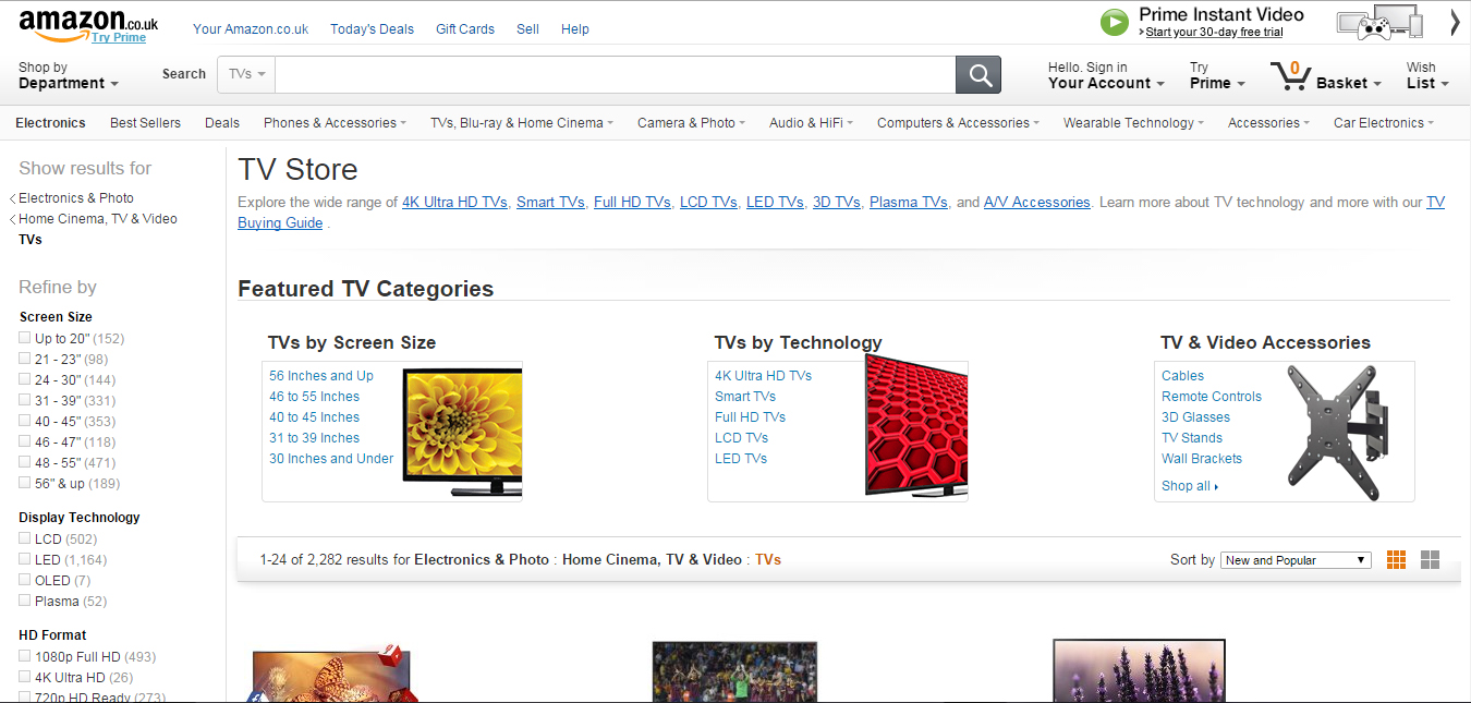 A great feature is being able to customise your search to get just what you want out of a television. You can narrow it down to all the 42″ HD Plasma televisions for example, or even the 46″ full HD OLED displays.