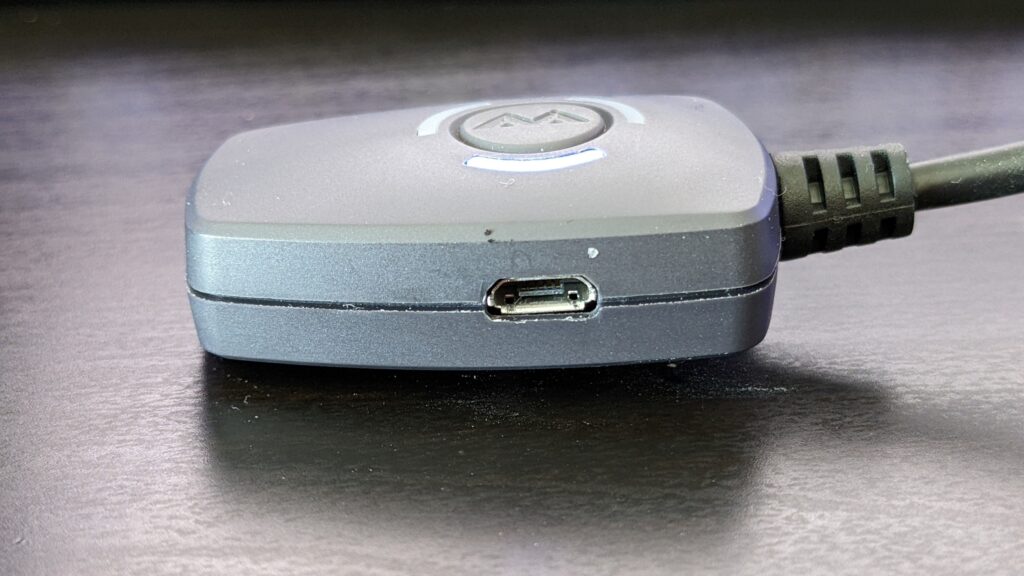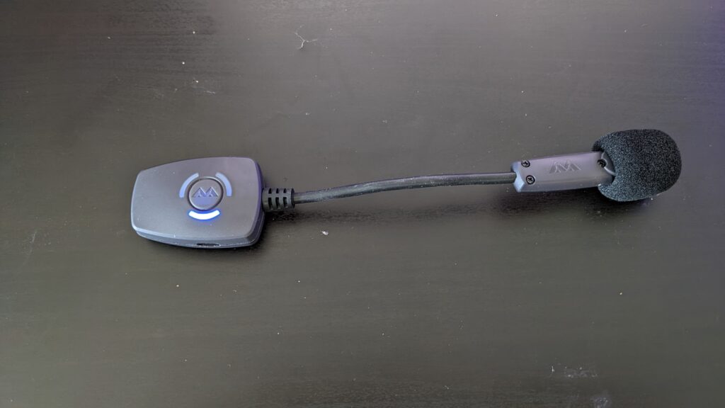 Connecting the microphone and dongle together was extremely simple. Hold down the button on the side of the ModMic and it’ll flash blue to indicate it’s searching. Do the same with the dongle, it’ll flash blue, and the two will connect. It sees it inside of Windows as a ModMic in your sound settings, and you’re good to go. There was no faffing around with getting the two to see each other, or unplugging and plugging back in or even software to mess around with, and I haven’t had an issue each time I’ve wanted to use the ModMic to play games. There are three indicator lights on both the Mod Mic and the dongle itself. Blue represents them being connected, a low battery which is orange or even charging when plugged in and muted is red. You mute the microphone by pressing the button in the centre of the controller. It’s easy to feel when playing games and has a nice satisfying click so you know you’ve pressed it. I will say it doesn’t cut the microphone sound straight away and can result in a slight thud for people listening to you. but this is fairly minimal.