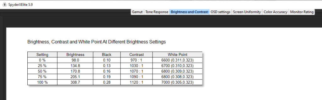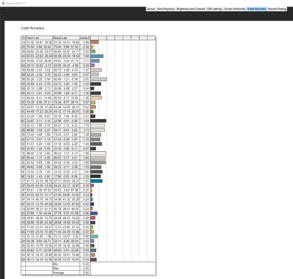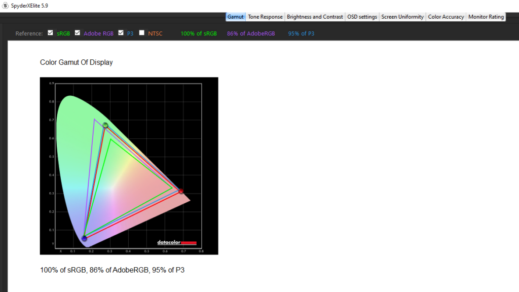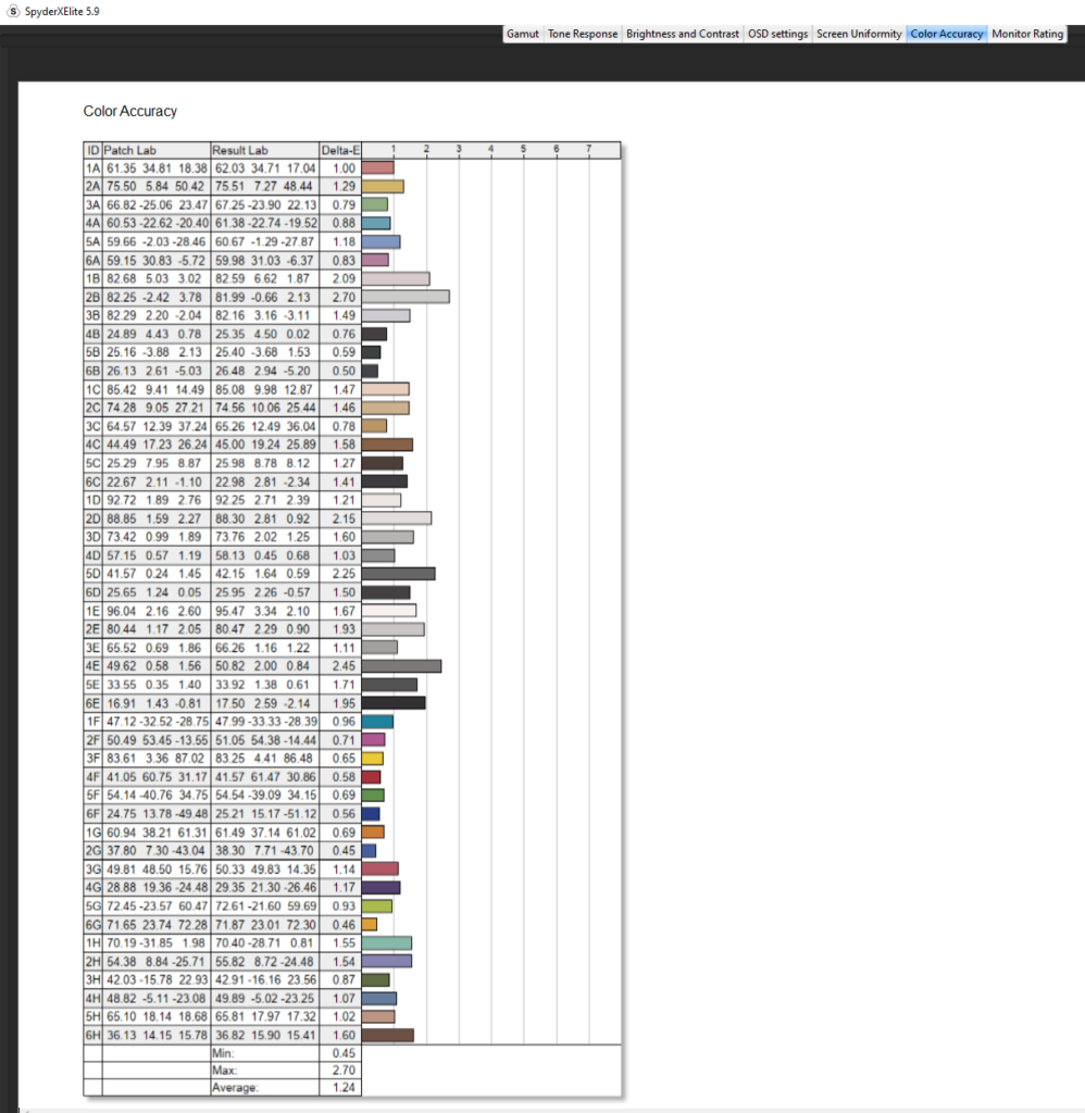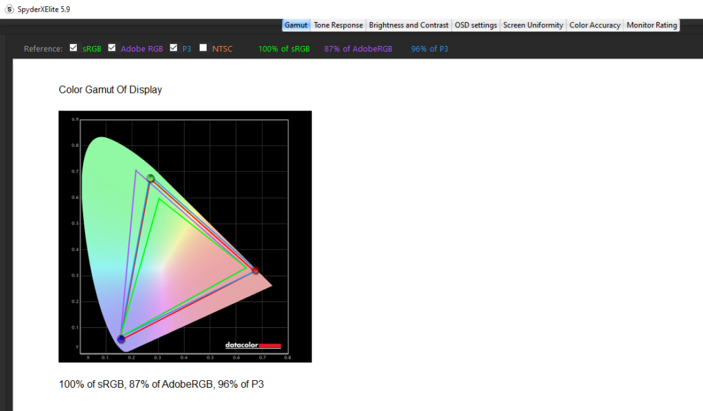 Running tests on the monitor, I found that my panel here was capable of 100% sRGB, 86% AdobeRGB and 95% P3 colour gamuts and to be fair to AOC with their contrast ratio claims, I found that 100% brightness or around 299 nits, it gave me a 1230:1 contrast ratio while 50% brightness or 165 nits had me closer to 1150:1 contrast ratio. Where I did find the monitor fell down a bit was with its colour uniformity, and at 100% brightness in the bottom left and bottom centre had issues with hot and cold spots, while the luminance uniformity, it was a bit sporadic over the entire panel, with the bottom left and left-hand side waving further from the path. Pre-calibration the colour accuracy wasn’t really too bad which I was shocked at, with an average Delta-E of 2.00, with the greys really falling down here, and post-calibration with my Datacolor Spyder Elite, the average Delta-E sat at 2.7. So out of the box, not really a bad monitor to be honest.