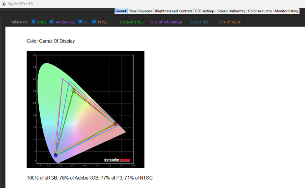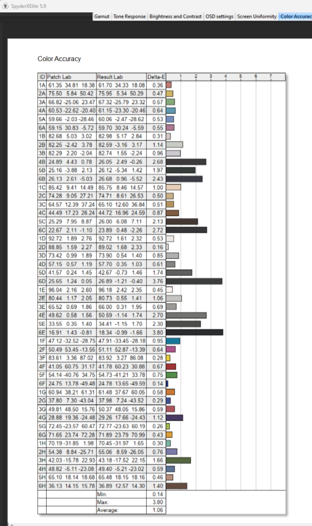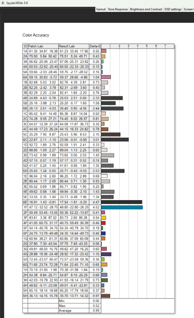 But in terms of image quality, this AOC AGON ultrawide panel is an absolute beast. For colour gamuts I ran two tests: Native Mode and sRGB Mode, and Native did come out on top with an sRGB score of 100%, AdobeRGB at 98%, P3 at 99% and NTSC at 93%. The sRGB Mode achieved a score of 100% sRGB which of course it did, but then it lacked with AdobeRGB coming in at 76%, P3 at 77% and NTSC at 71%. This did not reflect on my colour accuracy test however, where whichever panel mode I ran it in the score came out relatively the same, with the average Delta-E coming in at 1.06 and a maximum of 3.80 which are very good scores, and on par with what AOC provided in their calibration results sheet in the box. But of course, this is an OLED panel after all so I didn’t really expect anything different.