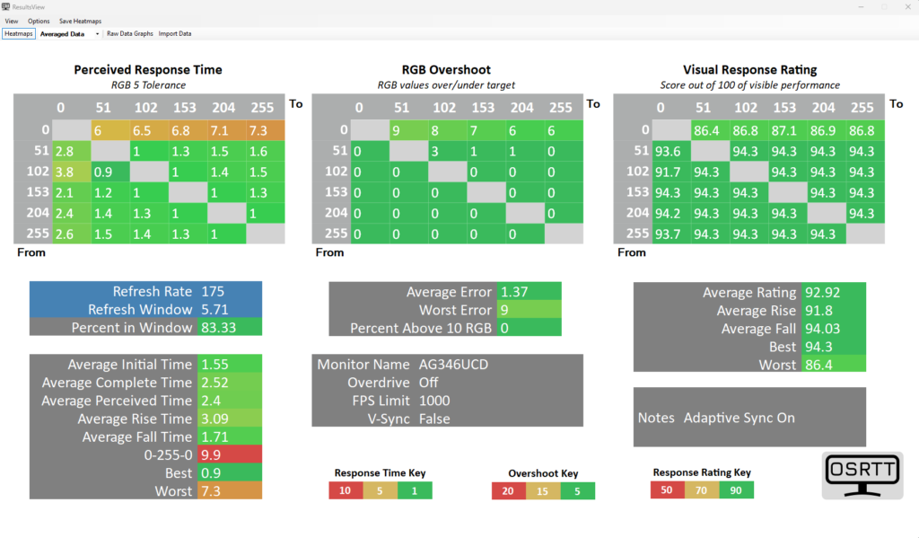 Testing the AOC monitor’s Initial Response Time as seen on screen measured with the OSRTT tool, it came in at 1.36 seconds at 175Hz with adaptive sync off. However, with adaptive sync on, there wasn’t much of a difference, with the initial response time hitting 1.55 seconds. RGB Overshoot was also extremely controlled as well with an average error of 1.37 with adaptive sync on, and running a UFO ghosting test, unfortunately, didn’t render the UFO characters as sharp as I would have liked as there is no motion blur reduction technology here like you would find on LCD panels, but there was certainly no ghosting with the characters on my testing, and everything did look nice and sharp to the eye, which translated well to faster-moving titles. Sure it’s certainly not the fastest OLED on the market now but having a modest 175Hz refresh rate is plenty if you’re going to be playing some more single-player story-driven titles, or even some light competitive games like Overwatch 2 which I must say did perform exceptionally well. And yes, while I admit I am still running around the Vatical in Indiana Jones, the game did perform superbly and the contrast between brighter areas moving into darker parts of the city looks pleasing to the eye. Path of Exile because of its incredibly dark aesthetic looked really nice, especially when there were spells flying around the screen because they really stood out thanks to that large contrast ratio. And my tried and tested Overwatch 2, as always looked sharp, and the colours absolutely popped. It was a real joy to play games on.
