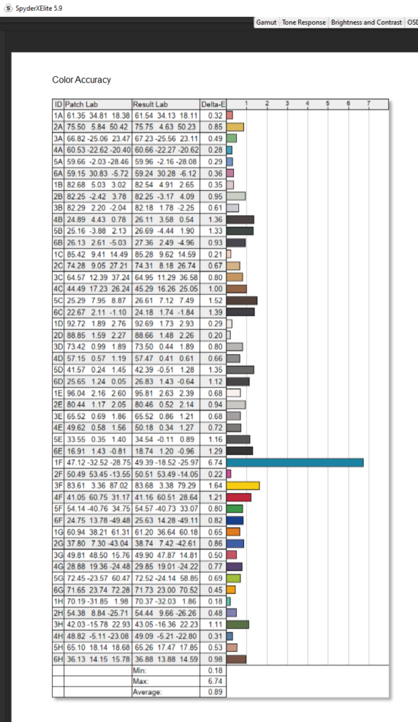 Colour accuracy though on this AOC panel was superb, coming in with an average of 1.69 Delta-E pre-calibration with a high of 6.26 and a low of 0.21. However, the high score was only achieved by a single blue colour which threw off the average somewhat, but still a great score overall. This only got better with a calibration where I saw the average Delta-E score drop to 0.89. So a small improvement but a welcome one. I decided to keep the monitor in the sRGB mode for the remainder of my testing, as this provided the best results for me and my usage with games and workflow on things like Premiere Pro for video editing. All scores can be found below in the gallery.