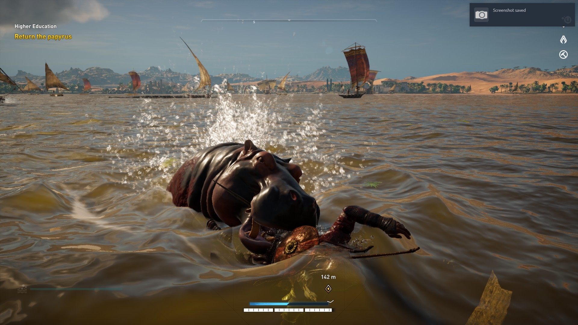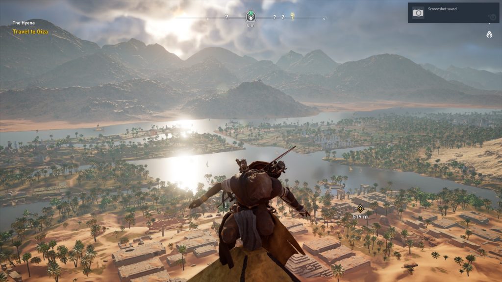 What’s more, Ubisoft has (mostly) abolished the loading screen, with the exception of fast travelling of course. But because you can seamlessly go from one side of the map to the other without stopping to load in the next area, makes the game feel HUGE! It’s even better that you can also stick a custom marker down on the game map, get on your mount, which can be a horse or camel, click auto-ride on roads and it’ll take you to that waypoint. It gives you as a player so much time to just sit back and take in the scenery.