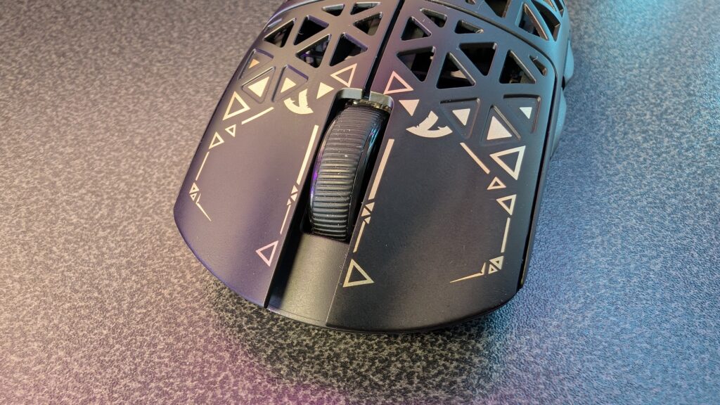 The hump also I feel could be a little taller, but I’m splitting hairs a bit with this one. It still feels nice and comfortable to hold in the hand, and everything is well within reach without the need to bend or flex my fingers, and pushing it around on the included skates on my mousepad was decent and lightweight enough while playing games like Overwatch 2 or similar. Its scroll wheel is a little low for my liking, though the incremental rotation felt nice for hitting particular weapons inside of games like Prodeus or Doom Eternal or similar, where you’ve got more than maybe a primary and secondary weapon. It has a left and right click, a scroll wheel which also clicks and two thumb buttons for a nice and simple, no frills setup.