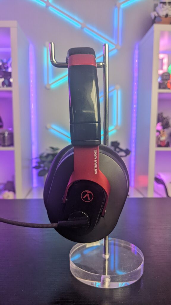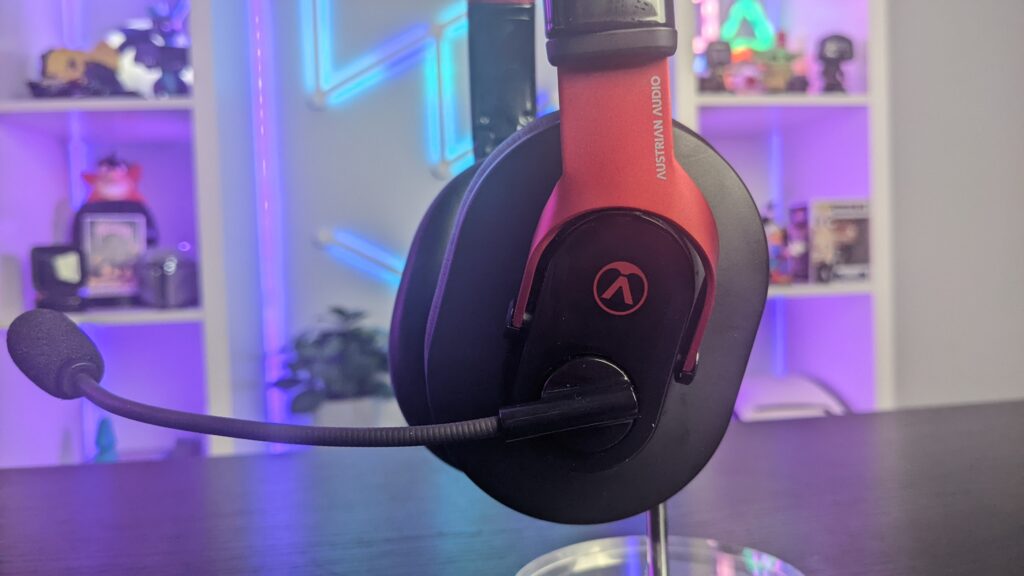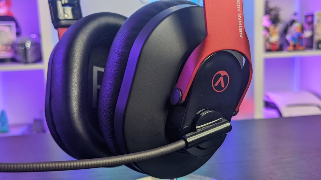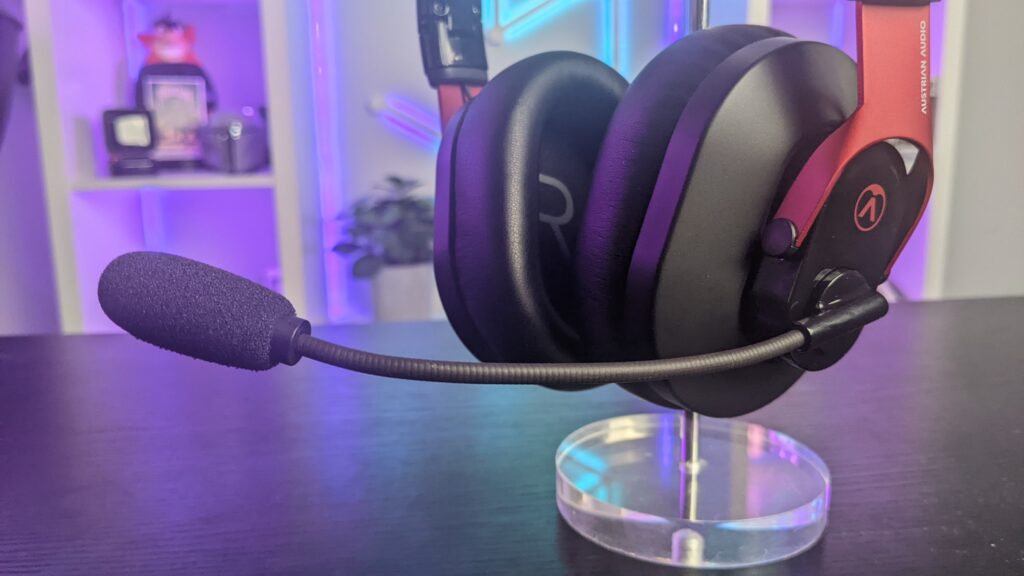 The microphone quality though isn’t bad at all, and I was actually surprised at how it performed, to be honest with you. For an audio-focused brand, it’s a very decent offering. Okay so it’s nowhere near broadcast quality, but it’s absolutely good enough for playing games with your friends on Discord and maybe even a bit of live streaming if you haven’t got a separate dynamic mic setup or some kind of condenser USB mics like a Blue Yeti or Elgato Wave 3 on the desk. Being an omnidirectional microphone though, you do get a bit of background noise picked up like keyboard keystrokes. It’s superb in all honesty, so top points there Austrian Audio, nice work. It can also be muted on the fly too, so just tilt the microphone upwards, and it’ll cut all audio, so that’s a handy feature if the phone rings or someone’s at the door.