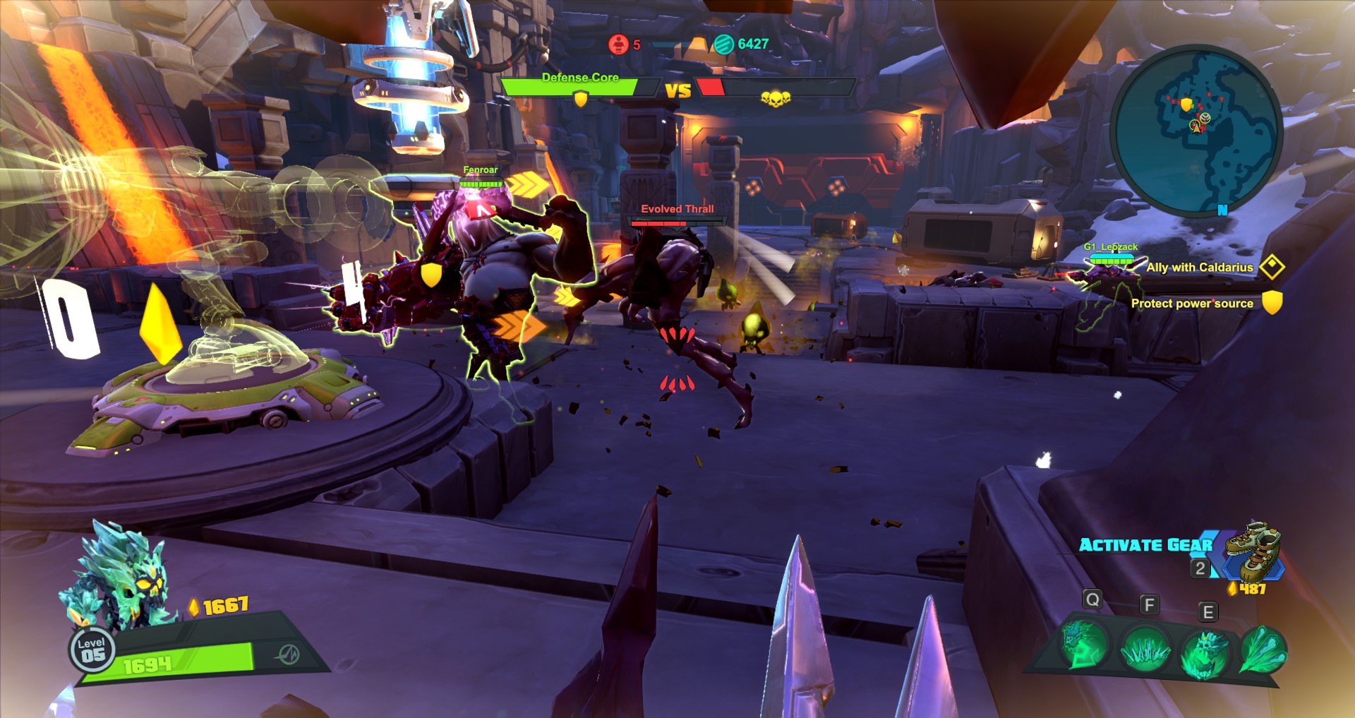 Versus mode will be instantly familiar to those that are coming from ANY MOBA GAME ON THE PLANET. There are two halves to map in which the opposing teams have to reach in order to win. There are robots, which are basically Minions in LoL or Creeps from DOTA that automatically spawn and make their way into enemy territory. You have to kill these as well as keeping an eye on enemy players coming to kill you. It’s absolutely hectic and a test of your first person shooter maneuverability.