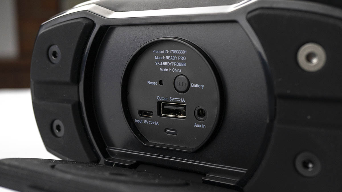 Just to let you know, this speaker is waterproof for up to 30 minutes at 1.5 meters depth. That’s pretty impressive and means it’s pretty safe pool side. The action mount I mentioned earlier is compatible with most GoPro accessories, which means the Braven Ready Pro can be attached to things like your body or bike frame to give you some much needed tunes when riding. Not that you’d want it attached to your body, this thing is an absolute hulk for such a small portable speaker, which is a good sign.