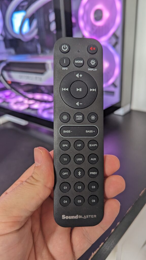 In terms of audio performance though, the Creative Katana SE I believe does a fantastic job of rendering good-quality audio. It does an exceptional job with the clarity of the mids and highs and has enough punch to fill a room. Sure it’s not quite as deep as say the V2X with its separate subwoofer, but if you’re filling a small office, gaming room or bedroom, then the Katana SE will definitely be enough. While watching the film Reptile on Netflix, the voices from the actors were exceptionally clear, and there was a nice thud when the actors were firing their guns. Gaming offers very similar results. I’m currently playing through Cyberpunk’s new Phantom Liberty DLC, and if you’ve played it, you know that A LOT of it revolves around having conversations with various different characters. The sound design on that game is good, but the Creative Katana SE offers a decent audio separation to highlight character voices over the background ambience. Gun sounds and engine hums also come across nice and beefy thanks to those two drivers in the back.
