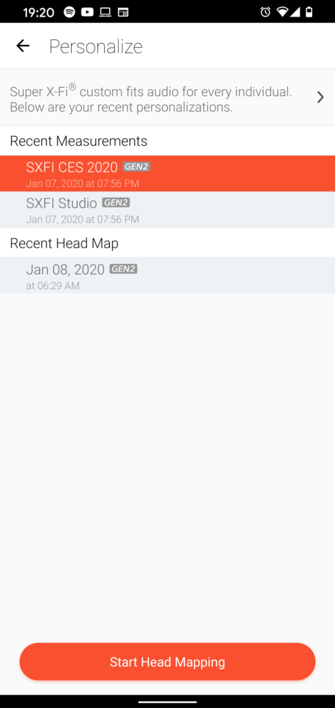 But, to tell you the truth, to get the SXFI set up properly, you’re going to have to jump through a few hurdles with Creative’s partner app. It was available on the Google Play store on my Pixel 4 XL, so I downloaded and proceeded to set up the Trio. The app needs to scan your head and ears, to get a measurment so Creative’s algorithms can go to work calibrating your audio. Now, I must admit I cheated a bit here, as I had my ears scanned with a machine at CES 2020 during our Creative press event, and the measurment has been saved to my account. However, once you scan your head, the headphones are ready to go, and your profile is saved to your phone and even the headphones themselves so they will continue to work to your profile no matter which device you plug them into including a Macbook.