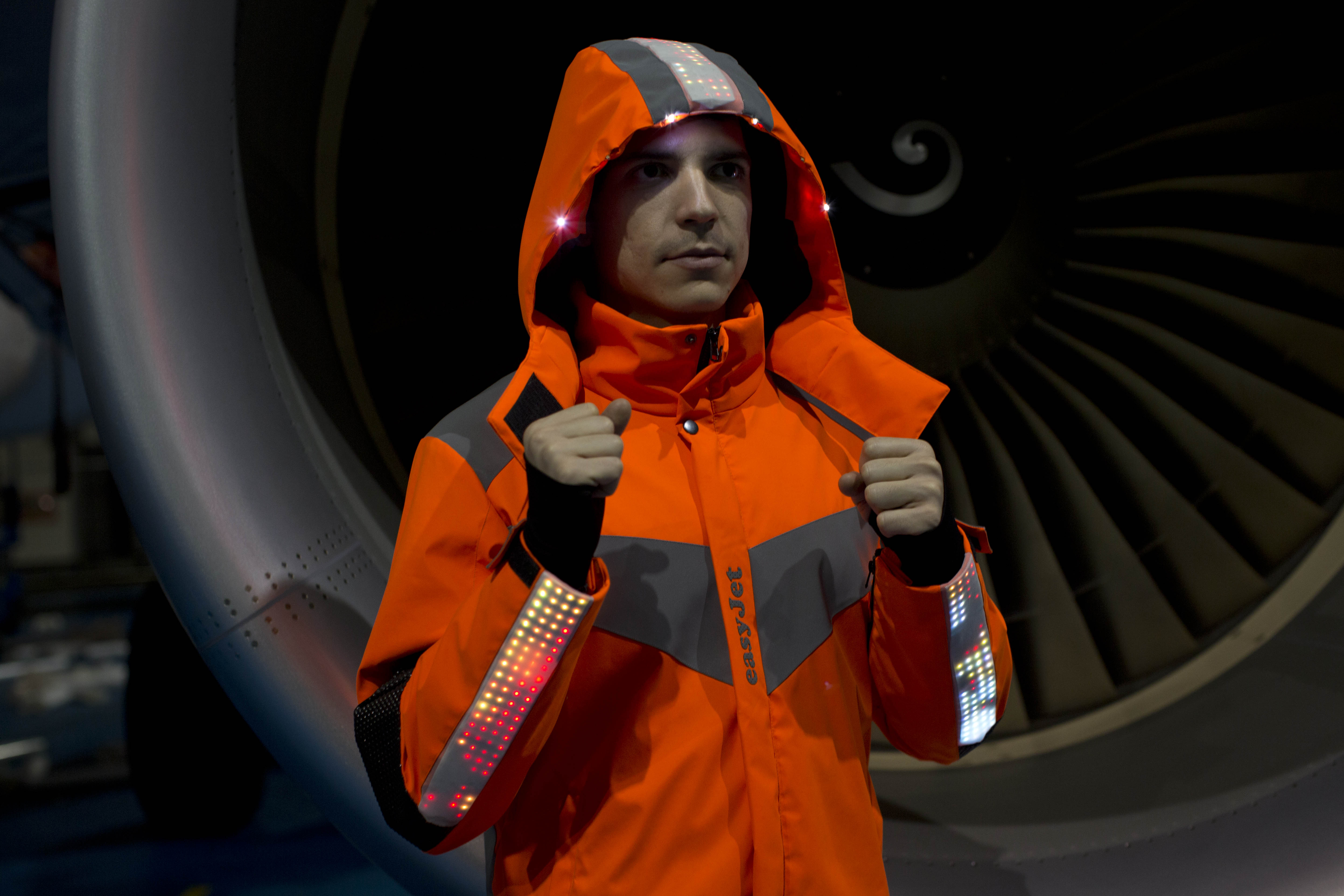 - LEDs in ground staff jacket cuffs to help with aircraft movement on the ground.