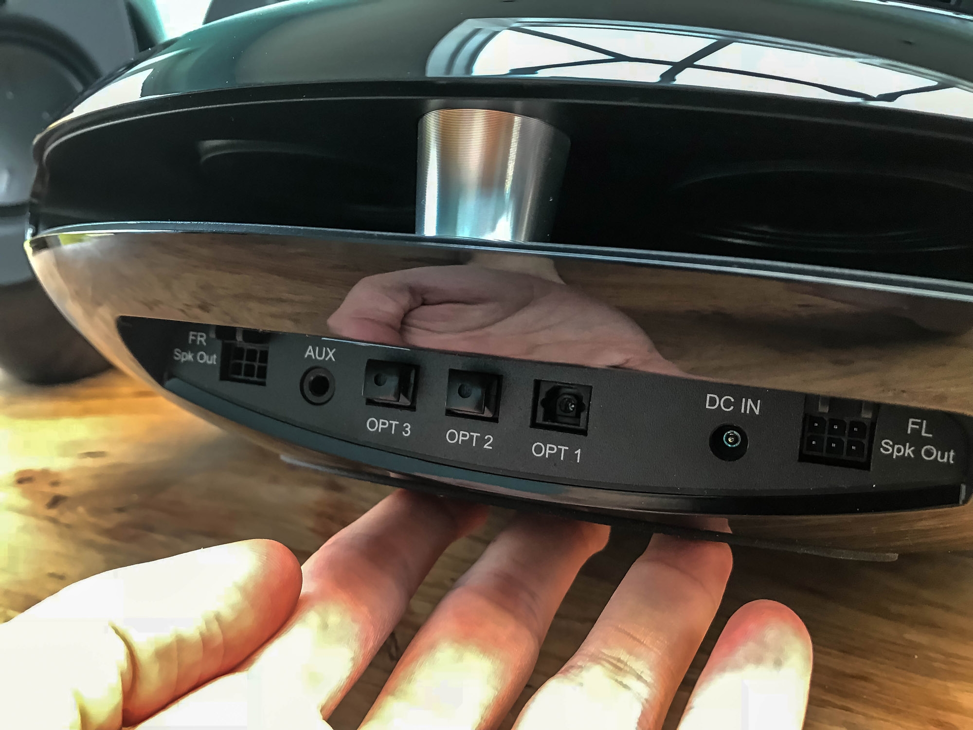 Once your speakers are in sync, you’re ready to start using them. You can control the speakers via the remote control or via the touch sensitive buttons located on the top of the center speaker. The center speaker also has the sensors for the remote, so point the remote at the center speaker. The center speaker has a display on it, so you can see what the volume is, which input you’re selecting etc.