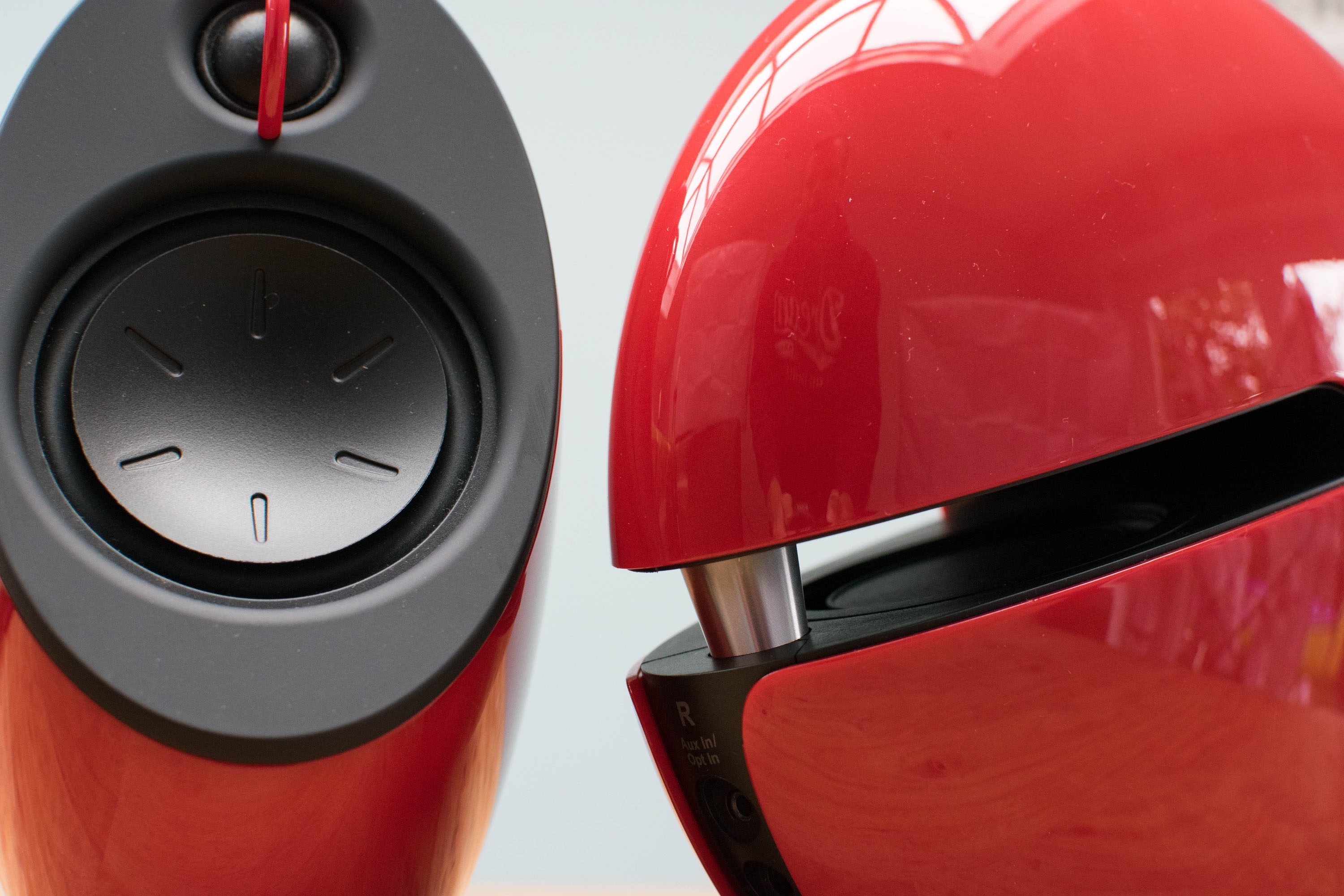 Before I even get into the box, I’m so excited to try these out, they look ultra modern and I love it. I grab my knife, make a small incision along the tape, the box opens and all I can see it red. Usually you would associate seeing red with something bad but not in this instance. Pulling the speakers out, I can feel they are heavy and have a good weight to them. I’m worried about finger marks on the glossy red finish but I have to have a feel, a look round. There are 3″ bass/mid range drivers, plus a 3/4″ silk dome tweeter in each speaker. The bass drivers are hidden within the back of the speaker, which can only be seen at certain angles and the tweeter is protected with a glossy red plastic arch. Perfection!