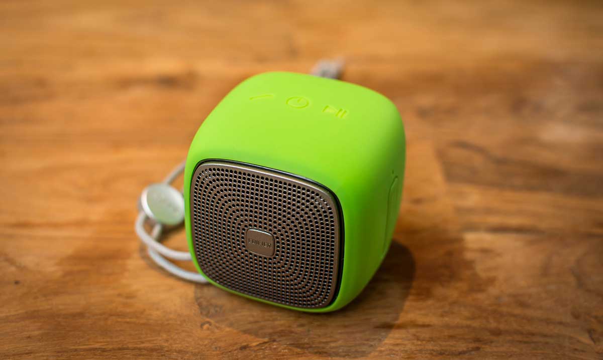 This little speaker comes housed in a clear acrylic casing, so it’s well protected if you plan on purchasing this online. Within the box are the speaker itself and a micro USB cable for charging. The speaker includes connectivity via Bluetooth 4.1 & microSD card, and it’s dust & splash resistant up to IP54. It comes in 6 different colours, including blue, green & yellow.