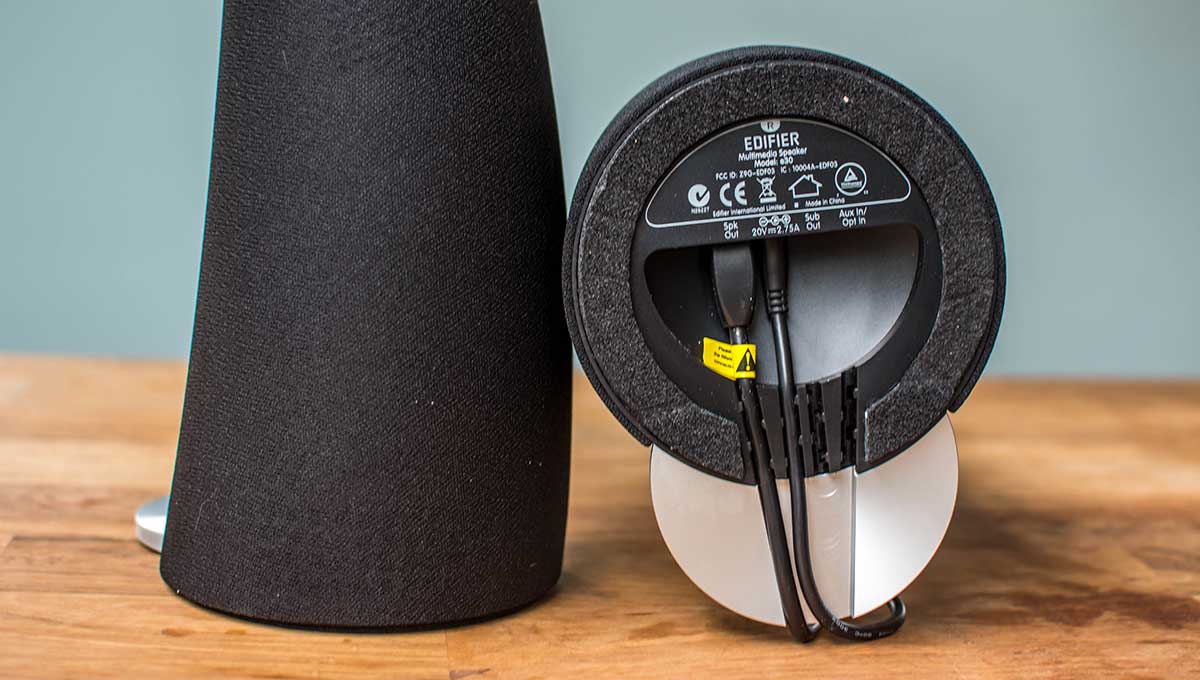 One of the speakers is the master, the other being the slave, meaning the master speaker has the built-in amplifier and input options. To the underside of the master speaker, you have the option to input audio via optical in or aux in, plus the option of adding a stand along subwoofer. There you will also find the power in and speaker out, to the other speaker. The cables sit nicely with the base of the speaker, with a nice bit of cable management so the speaker always sits flush on your table and directs the cables out to the back. I mentioned the physical inputs, but the speaker also accepts Bluetooth connections for wireless playback from your smart device. It’s worth mentioning that within the box, you get all the required cables, plus an aux & optical in cable too.