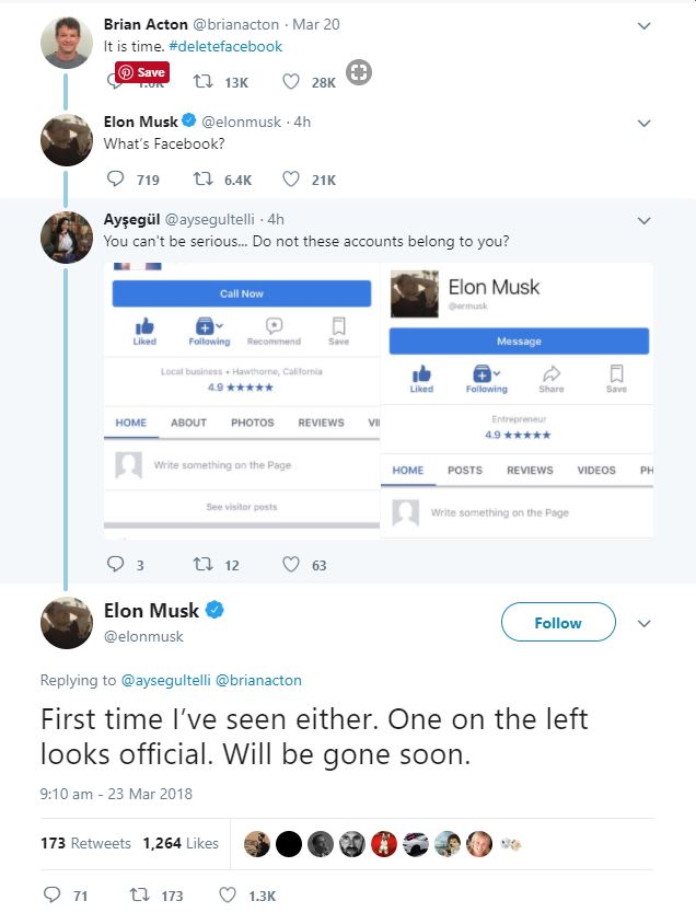 Well, in the light of recent events with the Cambridge Analytica scandal, Musk has one again surprised the world by deleting the Space V and Tesla Facebook pages. Not that he needs them though, his brands are pretty well known in the world now.