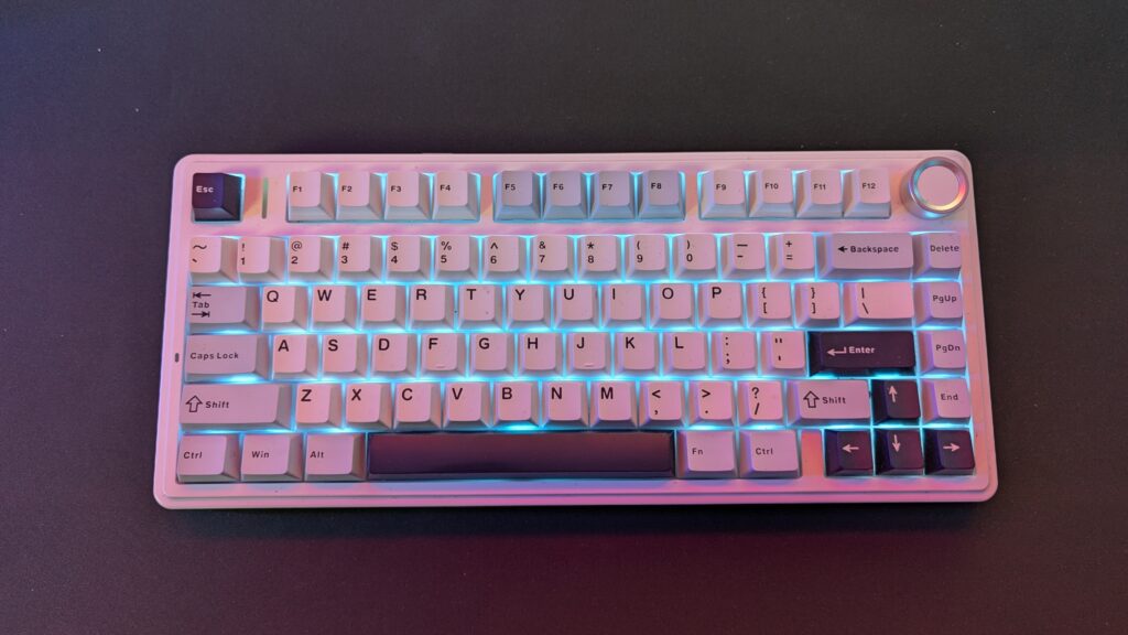 The drivers for both keyboards are absolutely identical which is making me think the same software company developed and licenced the driver to both manufacturers, or both keyboards are made in exactly the same place. But I’m unsure if this is really the case. But yeah, you just can’t notice a difference between both bits of software. There is nothing fancy, though and once installed, you’re greeted with a pretty plain and simple driver that gives you the ability to save out different profiles, assign macros, design macros and change your RGB effects to either a solid colour, matching up to music or rainbow wave-like patterns. And finally, both keyboards feature tri-connectivity being a wired connection, or Bluetooth or 2.4GHz dongles though the GS75 does have a 5,000mAh battery, and the F75 has a 4,000mAh battery which is slightly lower. And both work well when it comes to performance inside of games.