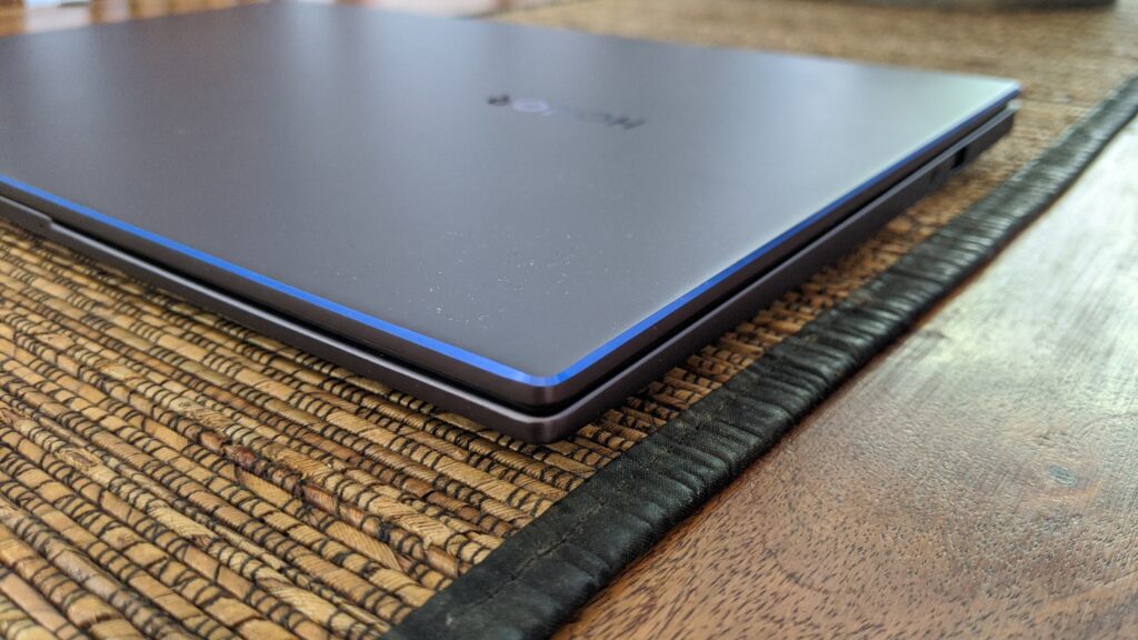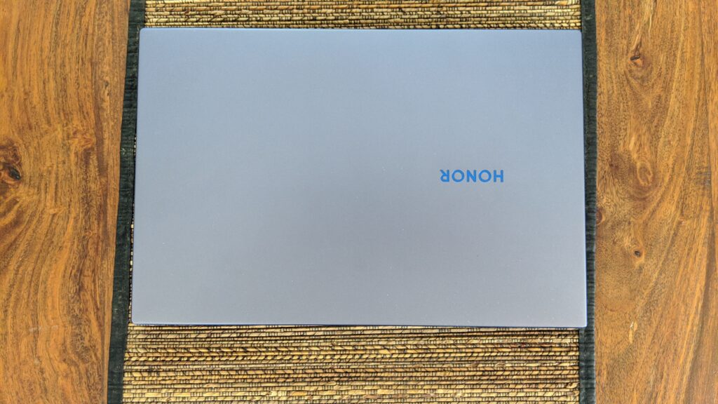 If you said the Apple Macbook Pro, then you’d be right. The laptop itself has a metalic finish to it, and gives it a premium look and feel, especially when put againt much more expensive laptops on the market. The Honor Magicbook 14 retains a sense of style, especially as it’s not quite pure silver in colour. It has a purply blue tint to it, which is especially noticable in the border that surrounds the screen, depending on the light hitting it which gives it a fresh feel compared to other basic design laptops around this price point. There’s also a blue shiny Honor logo on top which is slightly off-centered, causing my OCD to become a little triggered. Not sure why Honor decided to go with this design when it could easily have been centered, but they’ve kept it nice and minimalist none the less.