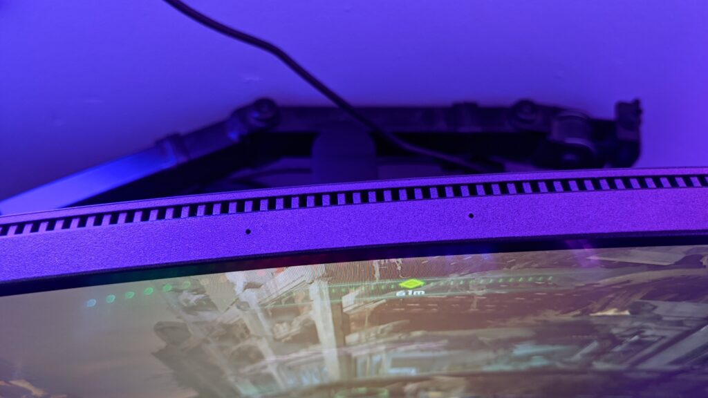 The Huawei MateView GT gaming monitor has an ultrawide display, with a resolution of 3440 x 1440p and an aspect ratio of 21:9, and is surrounded by very slim bezels, except of course the bottom bezel which is to be expected from any monitor. The screen uses VA technology and is rated 1500R, which isn’t the sharpest curve you can get in gaming monitors, and 1000R curves are becoming slightly more commonplace, but it’s enough to add a pinch of immersion to your FPS and sim racing games. At 34-inches though, the sides of the screen were wide enough to sit in my peripherals, which is again great for added immersion, and the material used here for the panel was actually pretty decent at reducing glare. Bezels are a little thick, and are noticeable when standing away from the monitor, but don’t cause issues when you’re sitting at your desk. It’s a far cry from monitors of old, but definitely not as slim as some of the more luxury Dell monitors coming out.