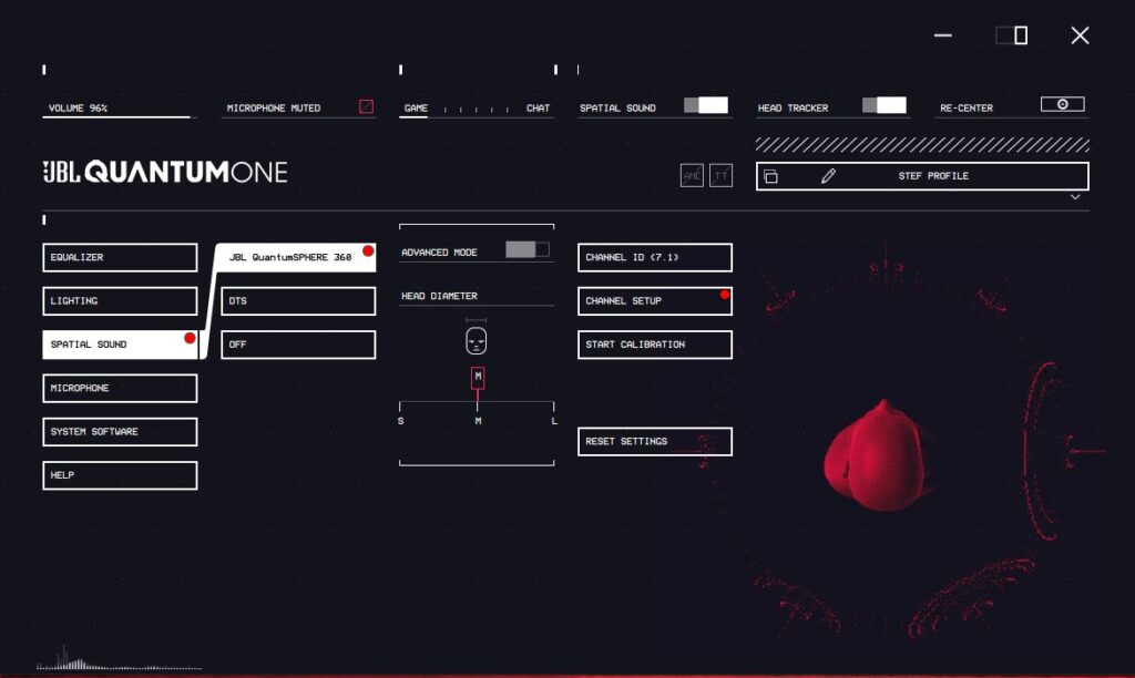 So the specs are pretty impressive, and in turn produce some wonderful audio quality, that we’re going to be going into. Everything runs through the JBL Quantum One driver, which downloads automatically for install when you first plug the Quantum One into your PC, and the setup is fairly simple too.