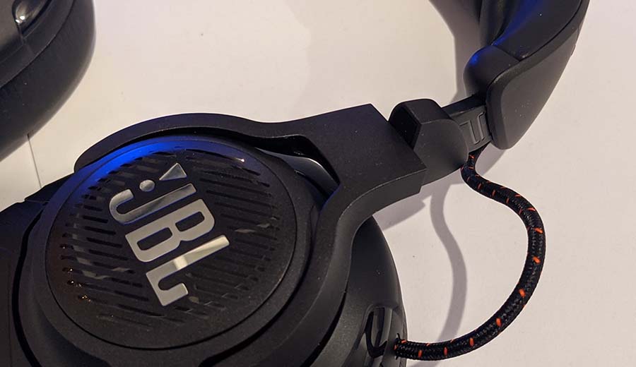There’s no hiding the fact that the JBL Quantum One gaming headset is a chunky set of headphones. They’re absolutely massive. And to keep the weight down JBL have decided to make this headset majorily out of plastic. This to me, unfortunately hinders its premium flagship type feel. I would have liked to have seen a bit more metal, especially around the hinges. There is though a metal rod that runs through the head band which will protect it from snaps if you accidentally bend it too far in the wrong direction. But, being plastic, it means it’s kept the weight down significantly, and the added padding around ther headband, and the fact the earcups are like two massive pillows for the over-ear feel, wearing this headset for long periods of time has been no problem at all.