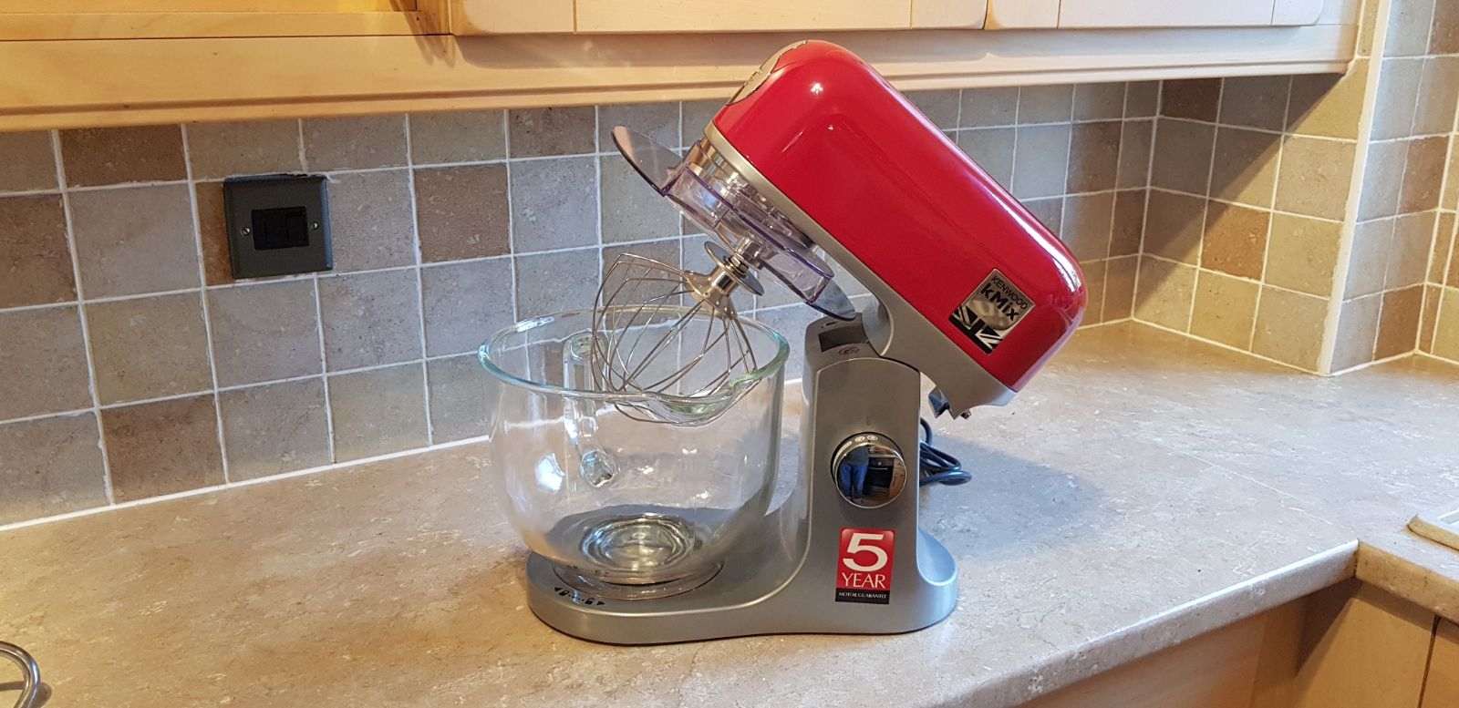 The mixer does come in four colours being red, black, cream and what looks like grey on the box but I could be wrong. We were sent the …. one and it looks great. You can expect the same level of quality as the last Kenwood mixer we took a look at too.