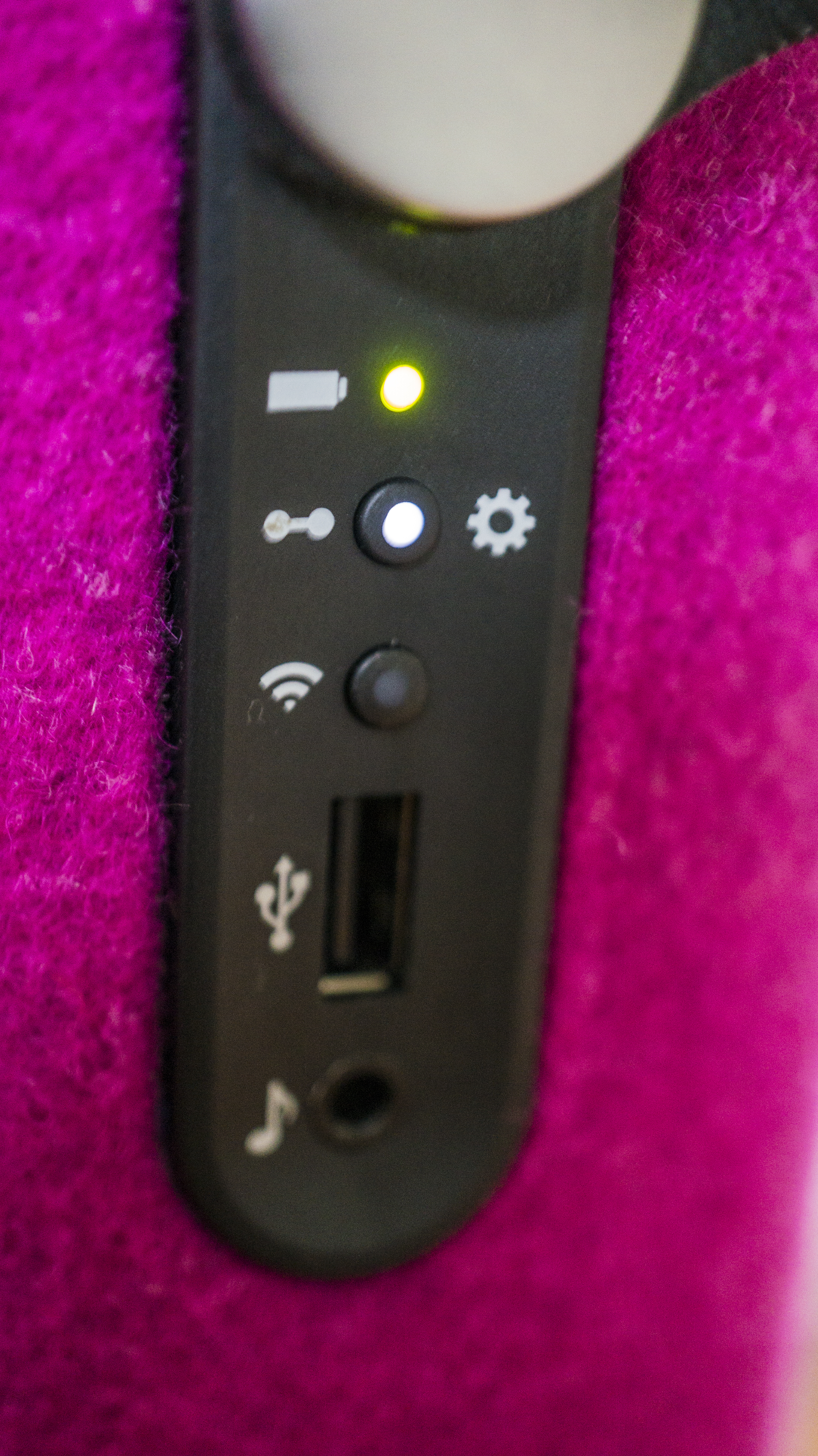 There are several ways to connect the Libratone Zipp Wireless Airplay Speaker to a music source. Our favourite is connecting up and MP3 player or iPod using a 3.5mm auxillary cable. It gave us a pure signal when using the speaker. There is also a Bluetooth setting for mobile phones which was easy to connect to. If there are several people listening to the speaker, it’s easy to connect everyone’s phone to play through. Last is WiFi. The Zipp doesn’t require an existing WiFi network as it kicks out its own. It worked very well when using my laptop to connect to the device as my router didn’t have to see the speaker before it connected. It also gave a very clean connection too as the signal was going to the speaker directly from my laptop.