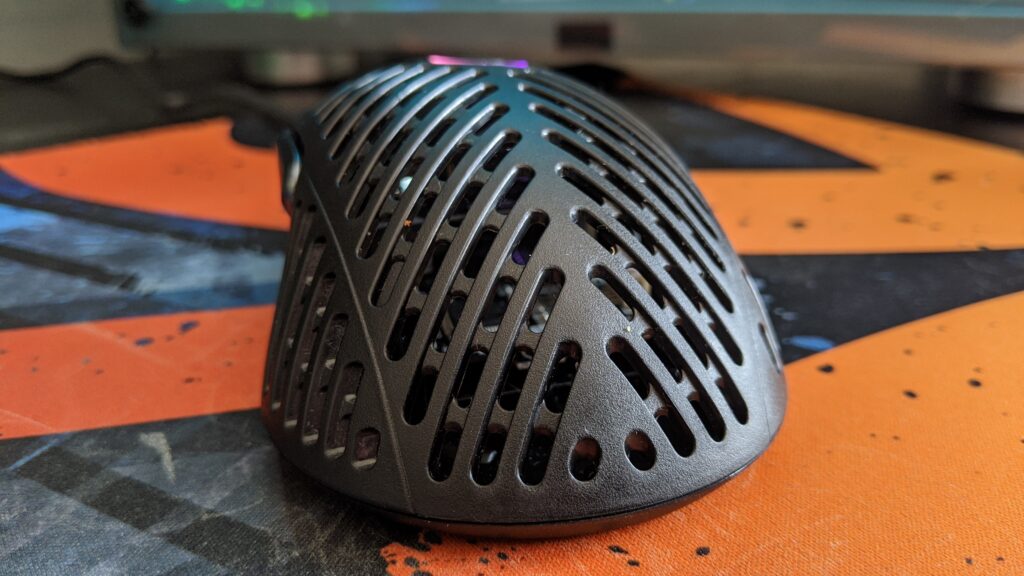 It uses a rib-cage design, very similar to what we’ve seen with the Coolermaster MM7710 or even the new mice coming from Glorious. This forms part of Mountain’s way of keeping the mouse weight to an absolute minimum. The mouse, even though in the hand it still feels pretty bulky, only weighs 67 grams, which is where they get their Makalu 67 name from. The outer shell is relatively smooth, and has a grippy texture where it counts on the mouse buttons. It’s also entirely made from plastiic too, which is surprising.