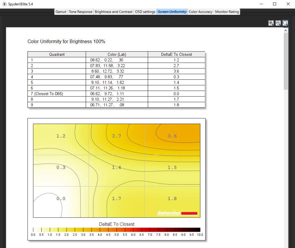 Running our MSI MAG272CQR through our Datacolour Spyder X showed some interesting results. While MSI claim that colour contrast comes in at 3000:1, in reality, this was closer to 2000:1. While colour accuracy after a calibration showed us a Delta-E average score of 1.06, which is significantly better than what we were given out of the box, which is odd. There was a huge noticable difference. The image uncalibrated had a purple hue to it, while after calibration, this was significantly reduced by adding a green tone. There are settings inside the menu for individual RGB sliders to attempt to reduce this though under the custom colour temperature preset if you don’t have access to colour calibration tools. Colour Uniformity for a 100% brightness was also exceptional and finally, the monitor will cover 100% of the sRGB gamut, but falls short of under 90% on AdobeRGB and a 90% DCI-P3 colour gamuts. Running the calibration also destroyed the brightness of the monitor image, but that’s what it needed to doto get a more natural colour. All settings can be seen in the gallery below.