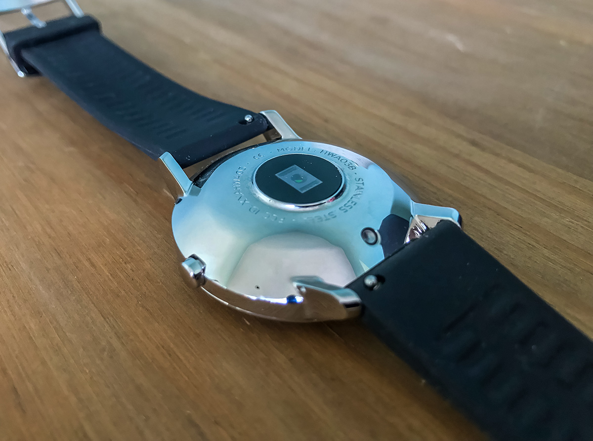 The watch we got sent was a 40mm, silver bezel, black face, with a black silicon strap. I do like my watches, I have 6 at home, none of which are smart watches like this one, as Ive never been too keen on the ‘smart’ watch look. However, the Steel HR has converted me and I think it looks stunning. It has a chrome stainless steel casing, with a thin bezel around the face, showing minutes in 5 minute intervals. It has a single push button on the right hand size, used to control the watch and underneath the body of the watch is the activity sensor. The black face is complemented with light grey and white highlights, includes a circular digital screen, step percentage dial, plus the clock hands of course. The wrist band is made of silicon, its adjustable and secured by a traditional watch pin clasp. Its very light, feels nice on my wrist and it looks smart!