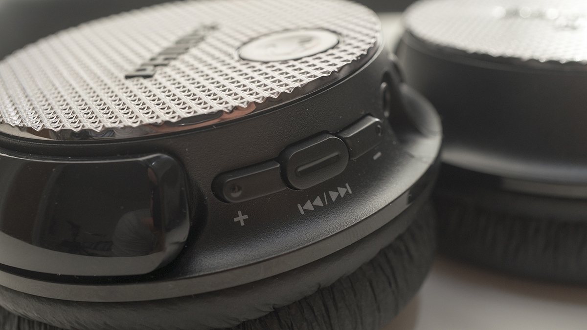 Button placement is a strange one. Headphone manufacturers we’ve noticed generally like to tuck them around the rear of the earcups, but with the Philips SHB8850NC headphones, I found they wrap around the front, especially on the right ear cup. If we start around the front, you will find a power and mute music button, with a skip track and play and pause appearing around the rear. There is an answer call button on the face of the right ear cup which can be easily felt so you don’t have to remove the headphones. On the left earcup is the noise cancellation button. A two second press and the world around you dips into silence.
