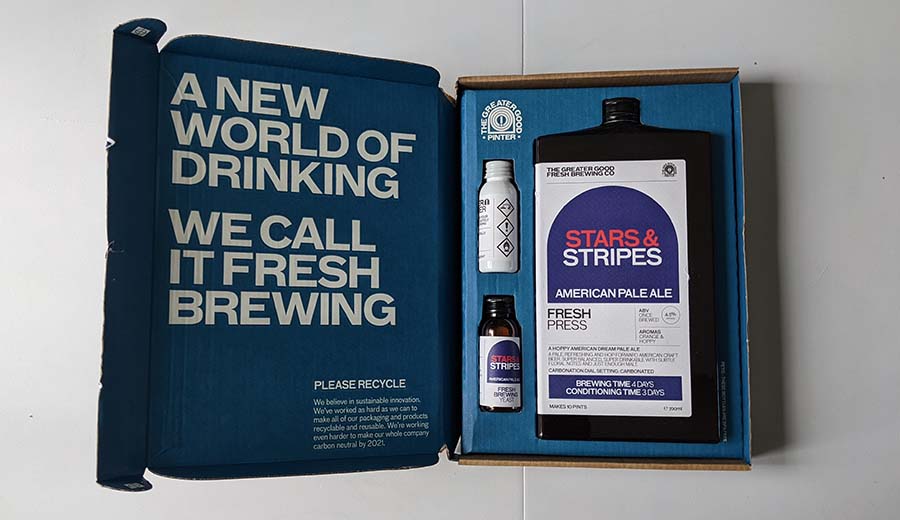 I also wanted to comment on the brewing kits, which are available on the Pinter website. The pale ale kit that came through costs £14, which I don’t think is too bad at all. Works out at about £1.40 a pint. Now that’s pretty decent considering it costs around £4 from your local Weatherspoons, and the cider kits are a little cheaper than that. Yes, the intitial cost is a little hefty for what it is, but you do get two home brew kits with that, so there’s a bonus there. For more information, head over to the Pinter website.