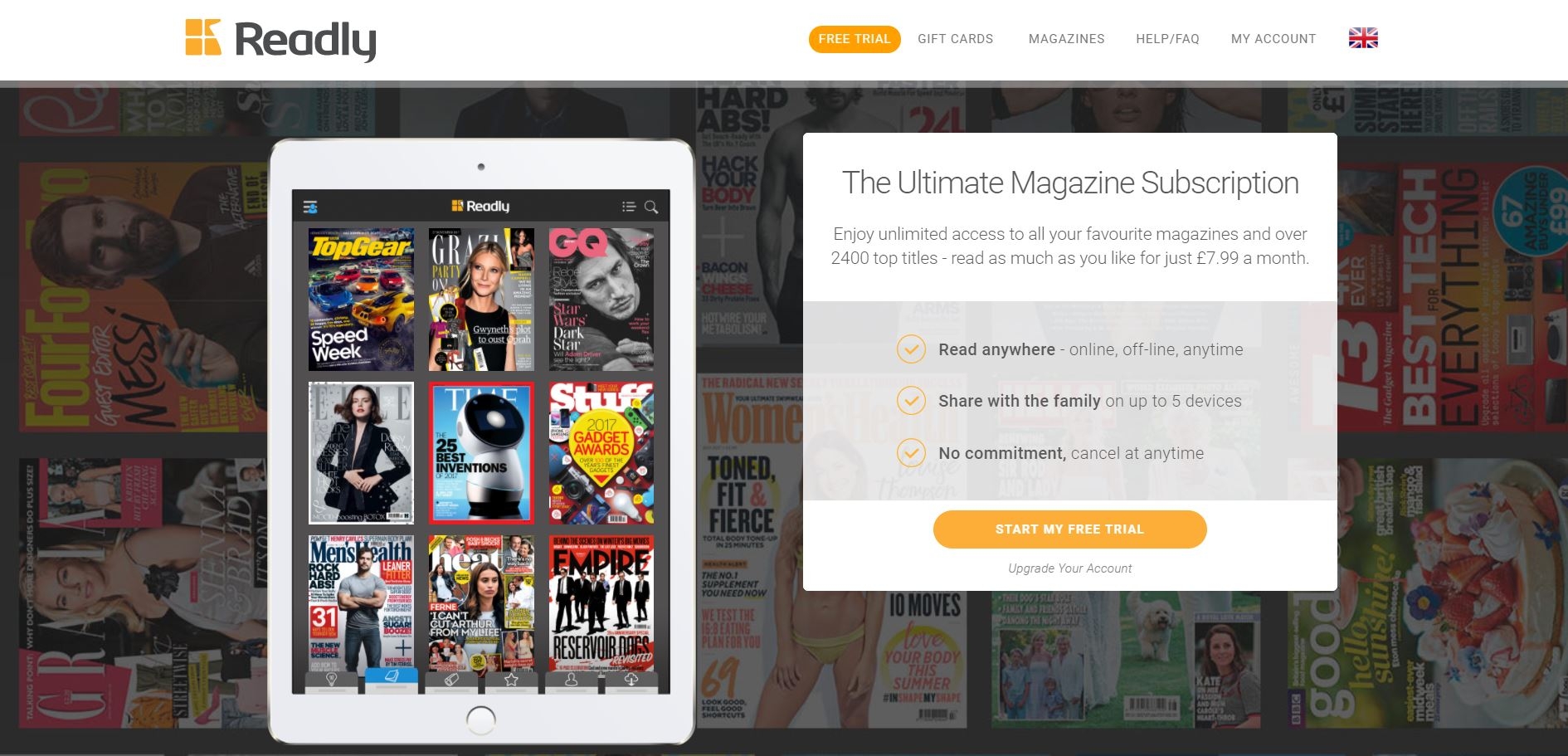 Think Netflix for magazines. Readly charge £7.99 a month for their subscription service which will literally put pretty much every single magazine you would see in a supermarket for example onto your mobile phone or tablet.