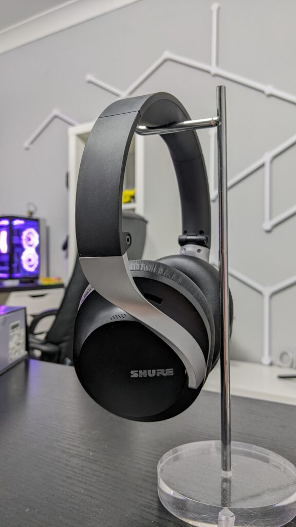 Now, it’s a shame to say that I wasn’t hugely impressed with the active noise cancellation on offer here. It’s an odd one and really punishes your audio senses. Shure is being clever by implementing a reactive ANC, meaning ANC could be stronger in a single ear if it detects that more noise is coming from that direction. So for example, if you’ve got a crowd of people on your left, the Aonic 40s will try harder to block off the audio in the left ear than on the right. And if you turn around, the crowd will then be more blocked in the right ear than the left. I would have preferred just a blanket ANC across both ears, no matter what is detected by each microphone. It’s definitely clever don’t get me wrong, but I don’t think this kind of thing is really needed, and I think Bose with their QC range and the Sony XM4s peak above Shure’s offering.