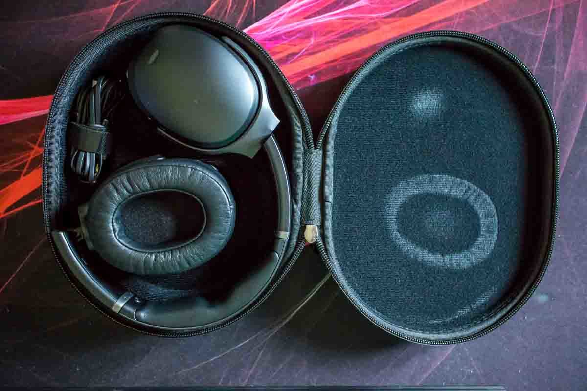 First impressions are very positive and straight away I’m impressed with the packaging and how the headphones are presented. The headphones come in a grey hardcase, with some subtle branding, a carry handle and it’s very robust, so it will protect the headphones while in your bag or similar. The case is molded, so the headphones can only be stored in one particular way and there is a small dedicated area for the supplied cables. Two cables are provided, a USB C for charging and your standard aux lead so you can use the headphones wired if the battery runs out on you.