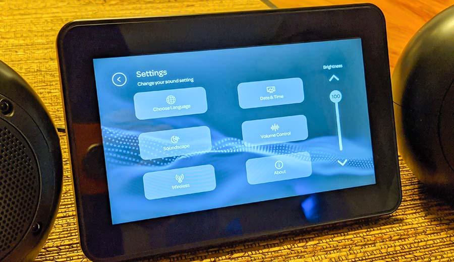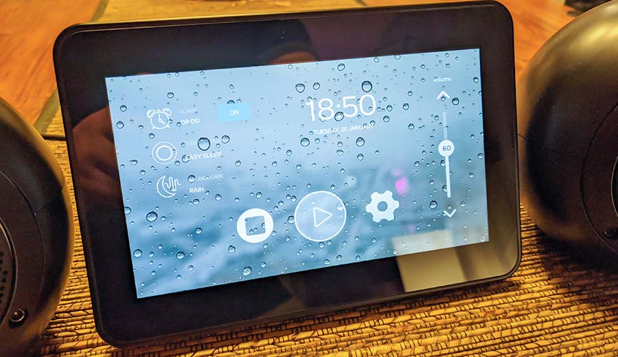 Setup is nice and simple too. Plug it into power, follow the on-screen instructions and hook it up to your Wi-Fi and you’re pretty much good to go. Diving into the settings menu, it’s pretty bare. You’ve got volume mixes to change, between the hum and soothing sounds, set your alarm and also change the language on your SleepHub unit.