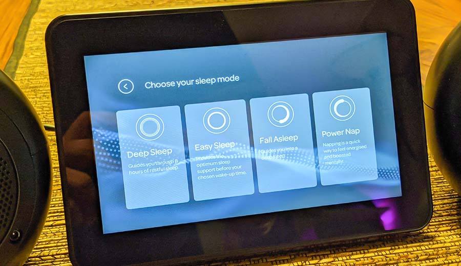 There are several cycles to choose from. I mainly stuck to the eight hour deep sleep cycle, but if you wanted something to make yourself drift off, you’ve got the Fall Asleep option, and if you wanted to take a nap for 30 minutes there’s an option for that too. And all it takes to get to each cycle is a couple of taps of the screen. There’s really no menu system to this thing at all which I absolutely love.