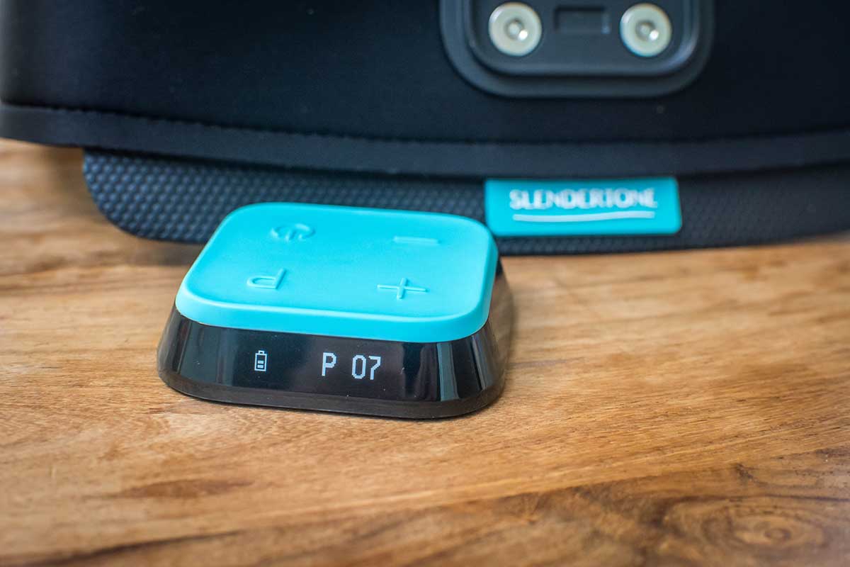 The controller is very small and magnetically clips into the belt. From the controller, you can select the programme you want and the intensity. It will also so battery life and keep a record of continuous uses. There are 7 passive programmes (beginner up to pro), which are to be used while doing your day to day activities i.e. working on your pc or lounging on the sofa with a movie. There are also 3 active programmes, Endurance, Beginner Crunch & Advanced Crunch, which are to be used while doing exercise, such a walking, jogging or cycling. All programmes are 30 minutes long, the time will count down on the controller and will beep once complete. Across each of these programmes, is an intensity setting of 1 – 100, which you can select depending on how you’re feeling. You will feel intensity 1, just, and as you progress through the levels, you will feel it become more intense, to a painful point, if you don’t stop. The buttons are responsive though, so if you do go to high, you can quickly go back down a few levels.