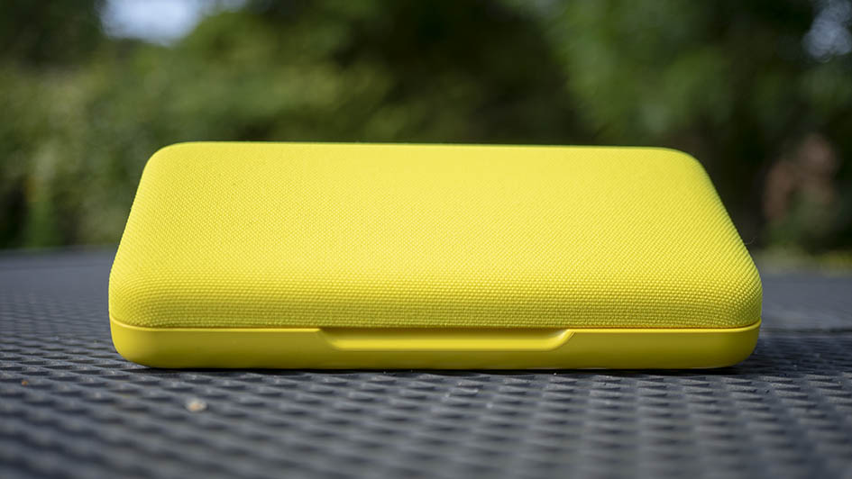 This time round everything has been made a lot sleeker, with the product itself coming inside what I can only describe as a tennis ball tube. It’s almost as if Snapchat are wanting to follow some kind of summer theme. A very nice marketing ploy to make them stand out on shelves. Inside the tube is the carry case which doubles up as the glasses’ charger. It’s bright yellow, and small enough to fit inside a pocket or handbag.