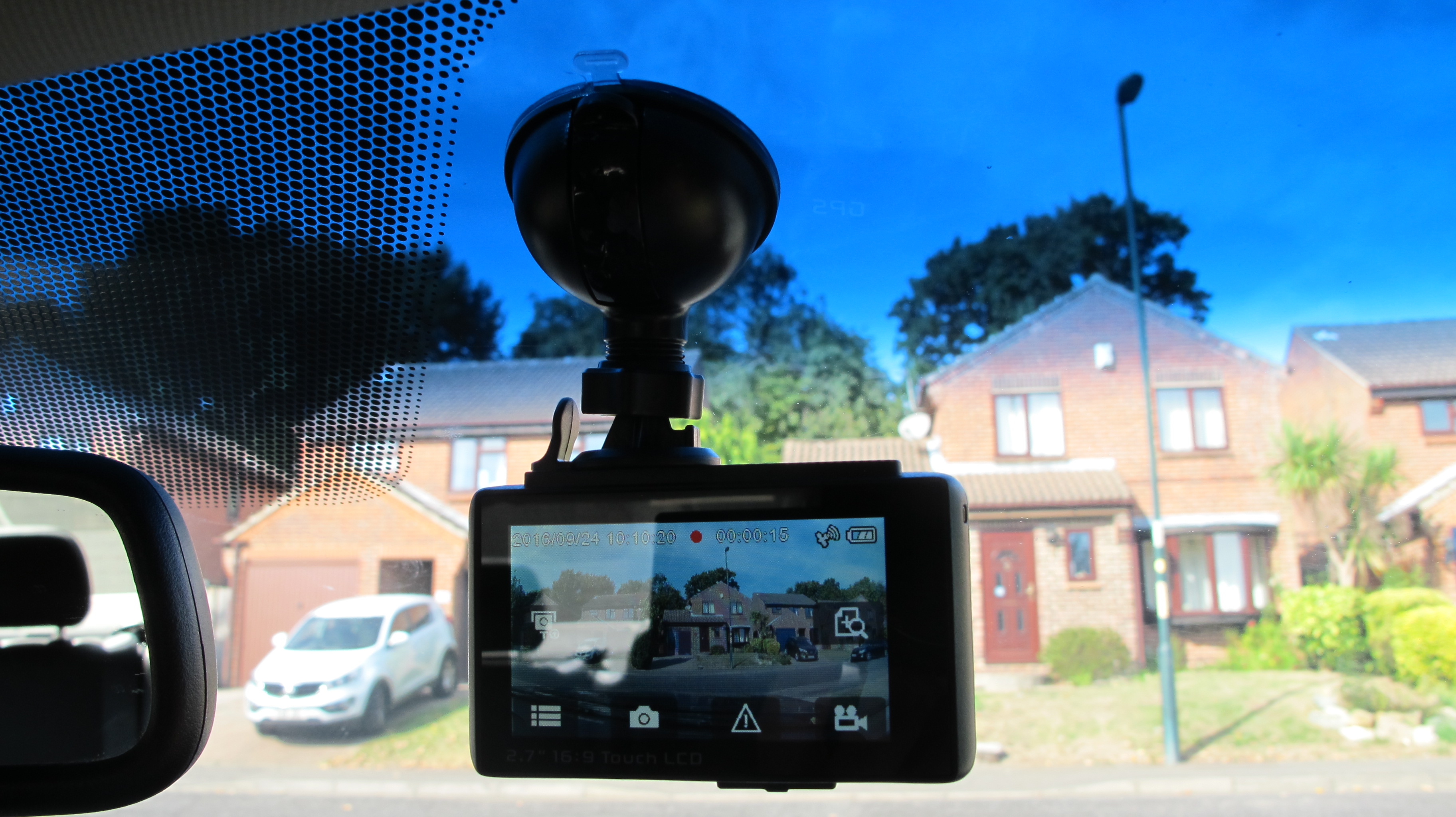 The Snooper Dashcam screen is small, but that makes it ideal for tucking up behind the mirror or in a lower corner so the power lead is not annoyingly dangling down the middle of your windscreen. If you intend to keep this in the car for the long term, the power cable is long enough to run around the windscreen and into the power socket.
