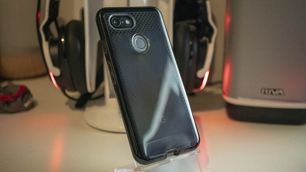 This is where items like the Tech21 Evocheck come in. It’s specifically designed for the Google Pixel 3, although they do this particular model for a range of handsets. There’s a good looking cross-hatch type pattern on the back. The case either comes in black or a purple colour.