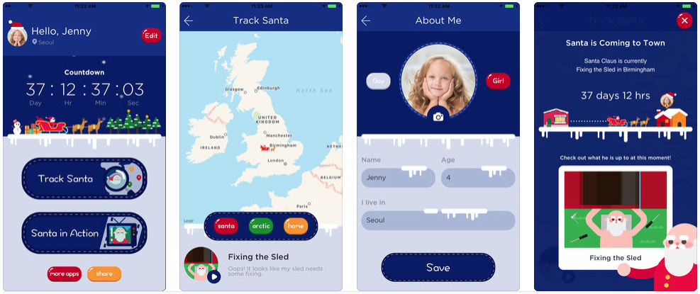 The best way to add to the Christmas eve excitement is by tracking where Santa is on his deliveries. The app lets you personalise your profile with a name, age and country, so you can watch what Santa is up to as he counts down to the big day!