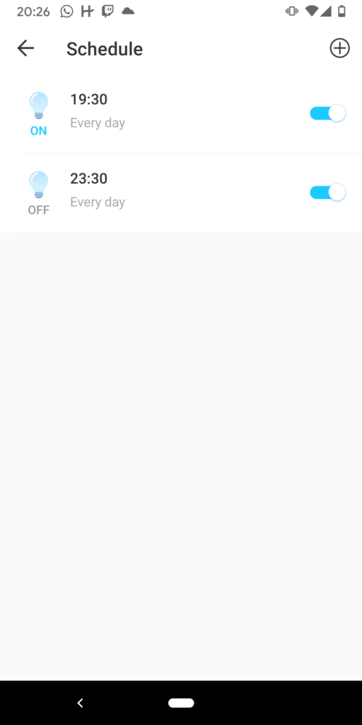 But, where this product shines is in its app. The TP-Link Tapo Dimmable Smart Bulb connects to your WiFi, and can work in a number of ways. For example, I have my Tapo bulb in my desk lamp, and I’ve scheduled the app for it to come on at 18:30 every day, as it gets a bit dark around that time now in the UK, and it switches off at around 23:30 when I usually go to sleep. But, the choice is yours on the schedule.