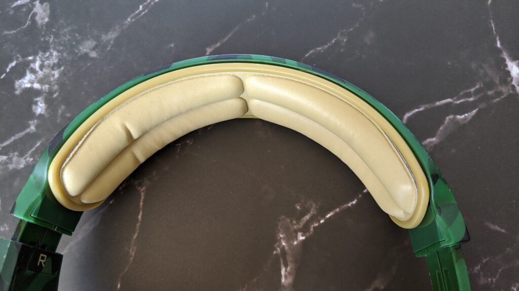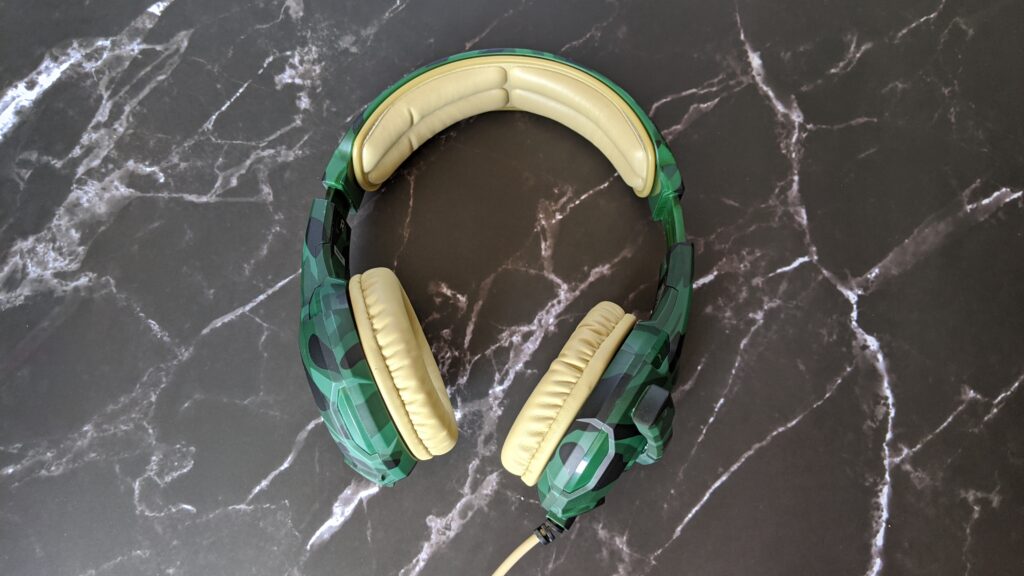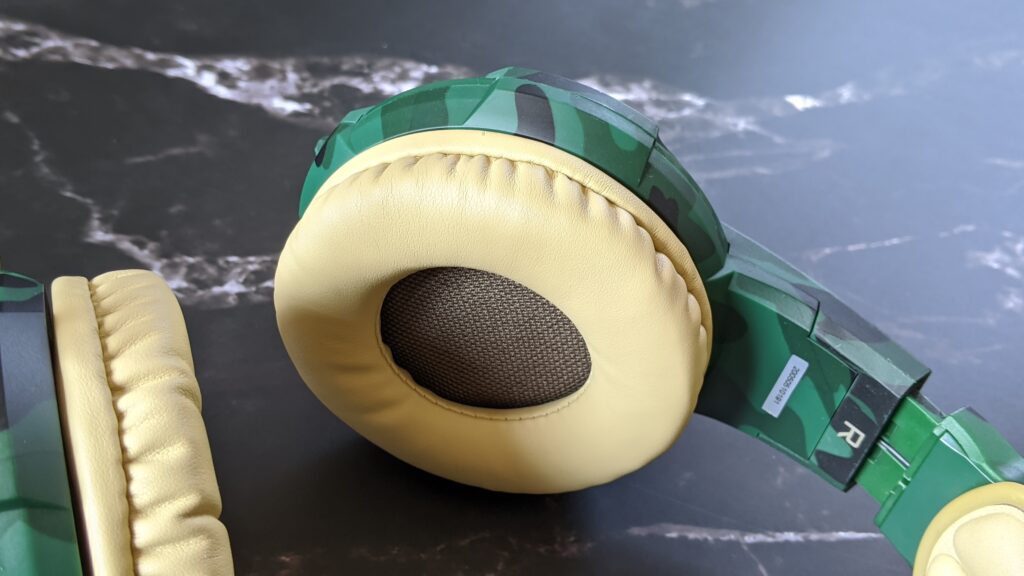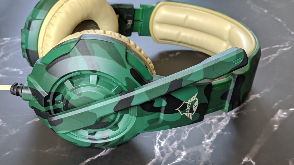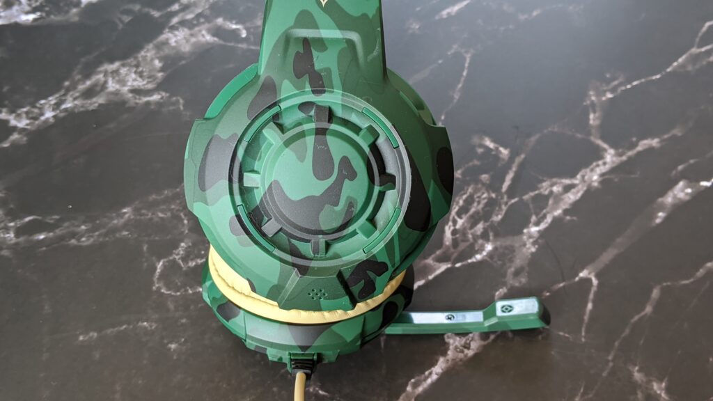 With everything being made from plastic, it makes the Trust Radius a little rigid, and when we attempted to stress test it, I didn’t want to bend it too far incase it snapped. It also creaks a lot too, which is less than ideal. The whole thing is wrapped in a soft to touch plastic with a camo pattern which looks fierce, but I wouldn’t say it was veryy tasteful, and I think it would suit a teenager down to a tee. In the centre of each earcup, the texture gets a little rough, and the moulded pattern on the sides make it look gamery, but doesn’t seem to serve a purpose, and I would have prefered to have a smoother more single piece of plastic type finish. If you’re building a classy desktop gaming setup, a set of these on the desk would be a little bit of an eyesore.