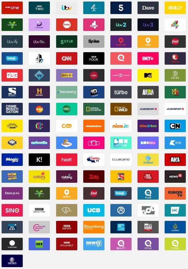 TVPlayer is a service which offers multiple live broadcast channels including the BBC, ITV, Four, Dave and Five. They also offer a number of subscription services to the premium channels like The History Channel and Eurosport. Overall there are around 85 channels, some of which are behind a paywall that you can access using TVPlayer,