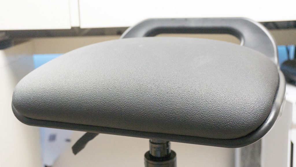 The VARIChair is height adjustable, so you can have it low to sit on it, or high to perch on the rounded edge to give you a much better posture. The chair, for the most part is comfortable to use. As we haven’t got access to a raising desk, I used the chair in its lowest position, more as a stool. The seat is made from a hard plastic, with a decent padded cushion to help with comfort.