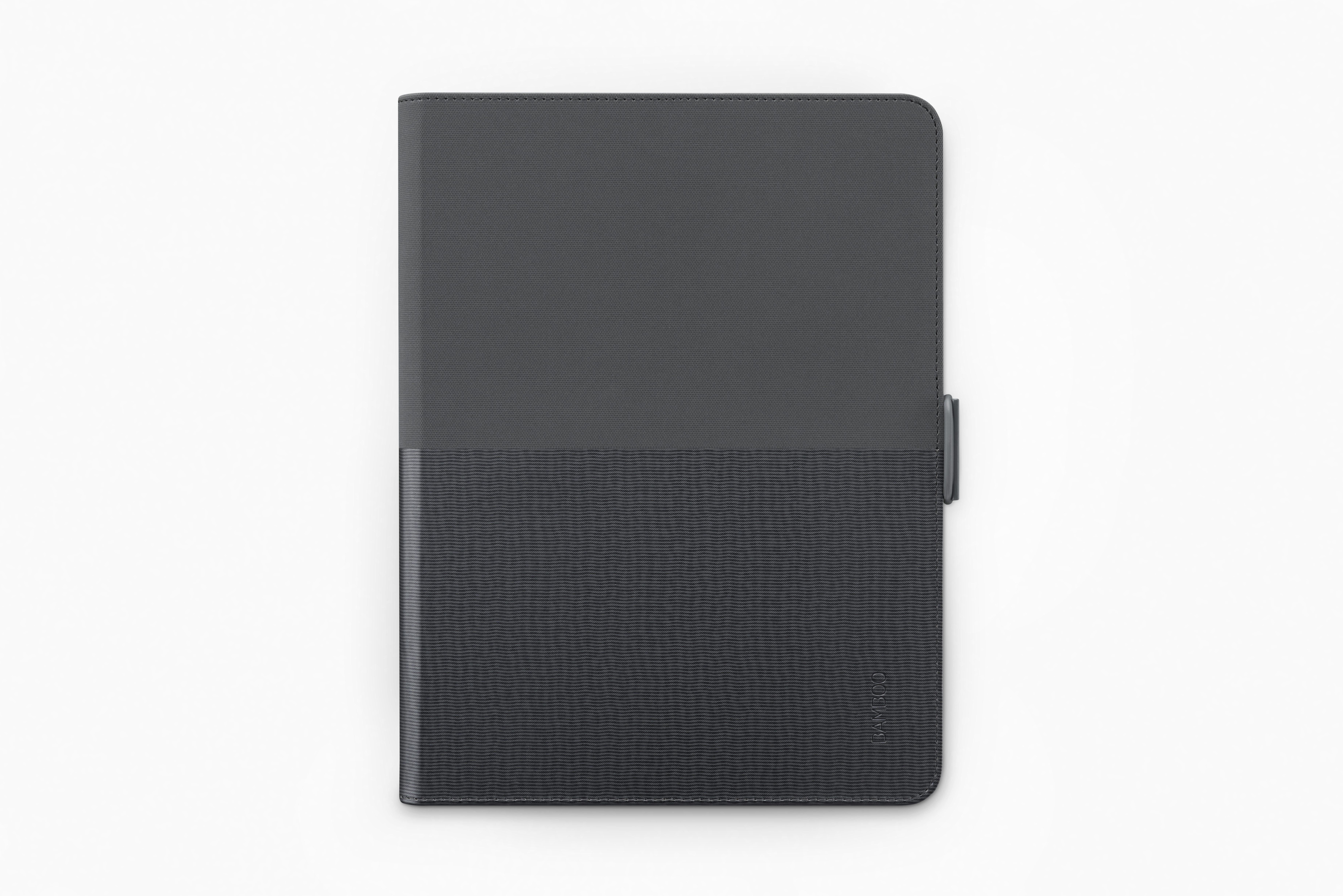 There are three different options for the Spark, one for your iPad Air, one for your mobile phone and one for a generic tablet, all of which feature the same notepad technology. They’re just different housings for your mobile devices. In the box is the folio, a pen, a USB cable and two replacement ink cartridges. Picking the folio up for the first time, it’s clear that this is a high end quality product. It looks great, has a very luxurious finish inside and out, albeit very business looking. This is not a problem for us, as this isn’t necessarily aimed at the creative types, more a sketch pad or note pad for business meetings or academic classes although could be used for on the go artwork ideas. The folio is also very light and thin; making it easy to fit into a backpack or briefcase type bag.