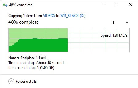 The results from the benchmark test are very positive and beat the stated speeds slightly with 135MB/s read, 125MB/s write. Disappointing results on the larger 4K files though. I should also add this is a 5400RPM drive, which has its pros and cons compared to a 7200RPM drive found in some competitors drives. In a real-life test, speeds drop a little but not by much and I was able to copy a large video file very quickly at 120MB/s. I did plug this into my PS4 too and transferred some game files over and it appeared to be reasonably quick but it’s hard to tell via the Playstation OS.